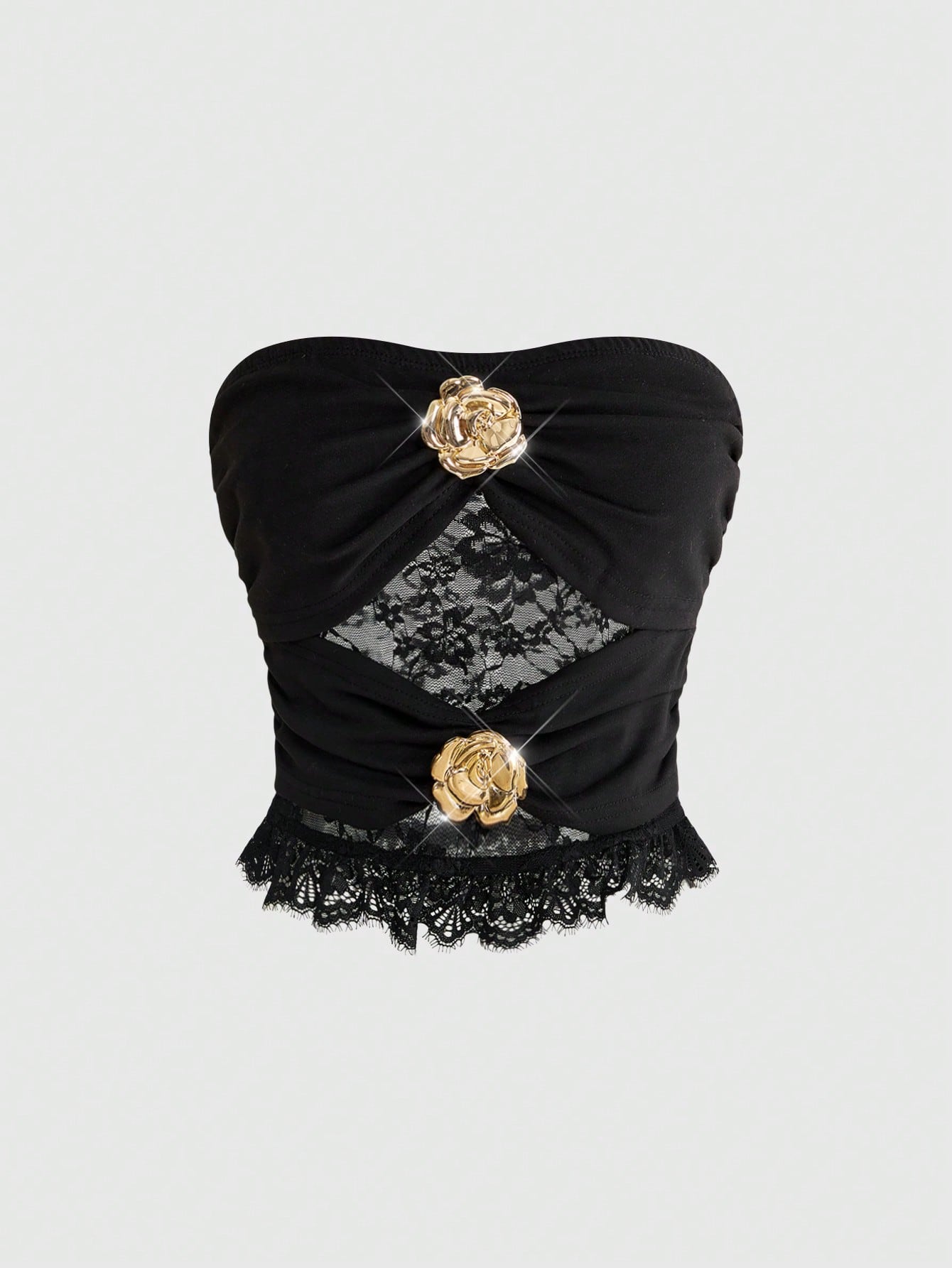 ROMWE Avant Rose Gold Metal Clasp Black Sexy Lace Hollow-Out Camisole For Women