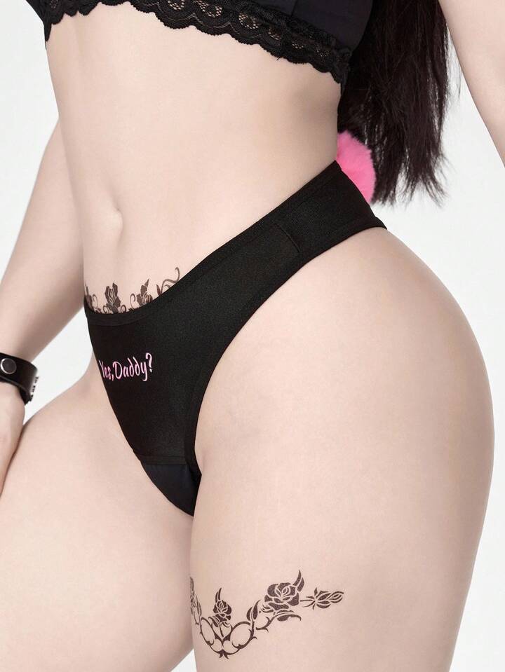 ROMWE Avant Sexy Bunny Girl Crotchless Funny Slogan Women Panties