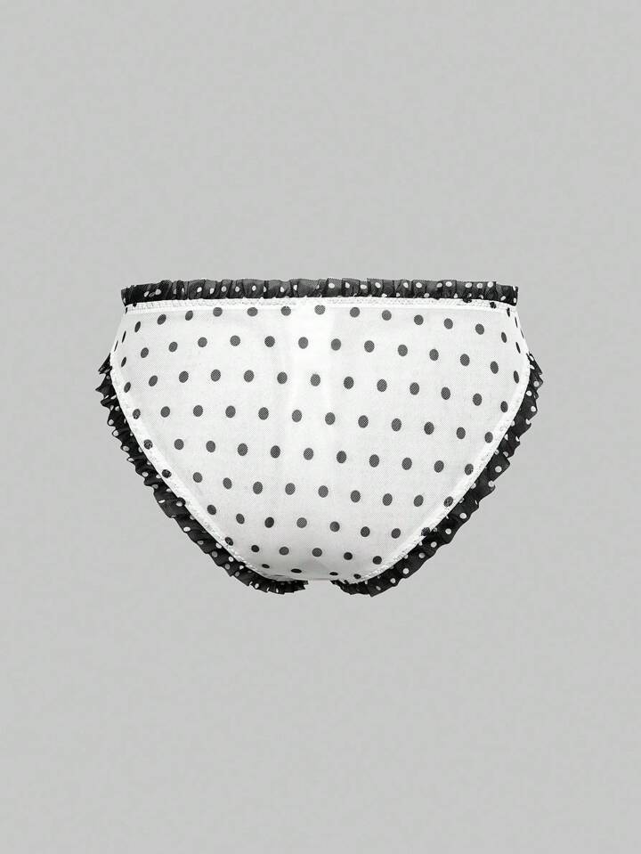 ROMWE Avant Sicily French Style Vacation Colorblocked Polka Dot Ruffle Trim Sexy Lingerie Set For Women