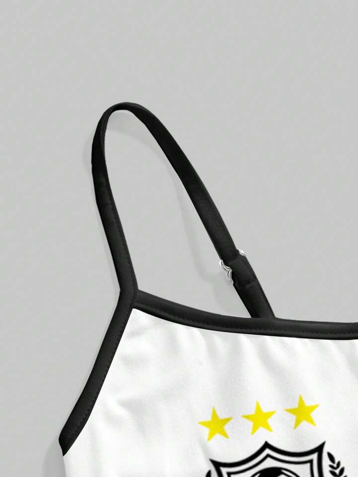 ROMWE Avant Sporty Sexy Ballet Digital Football Black White Star Print Women Tank Top Cami