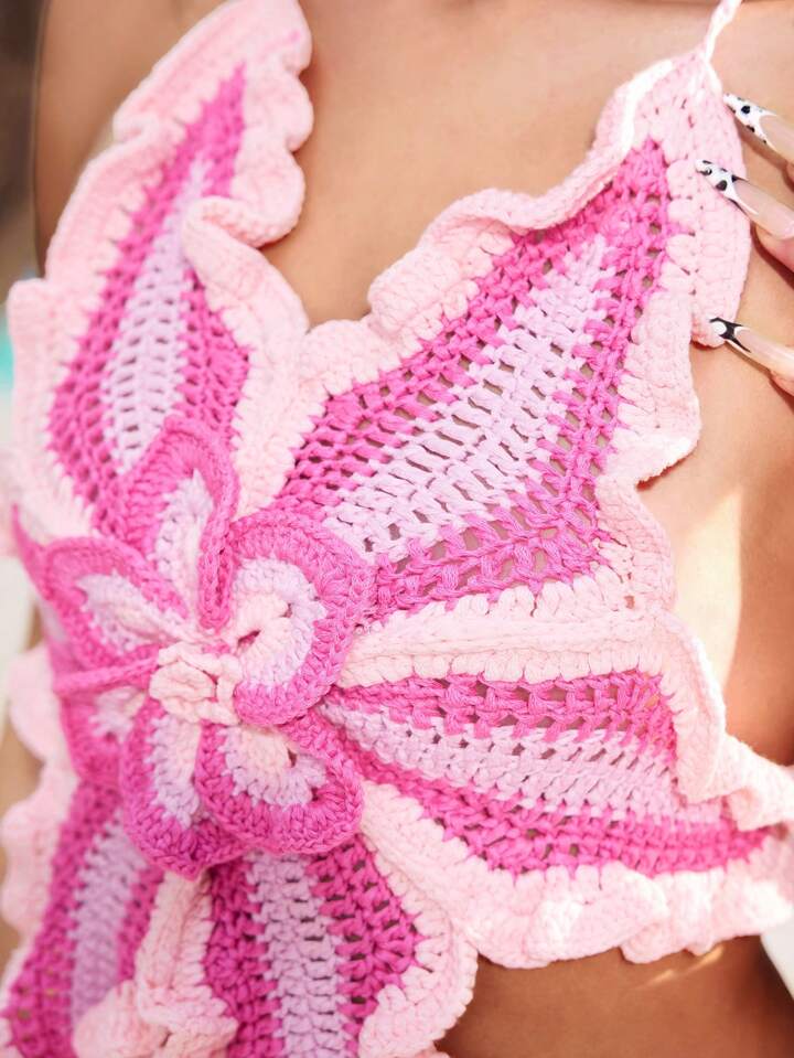 ROMWE Avant Women's Coconut Island Floral 3D Knitted Halter Neck Tops