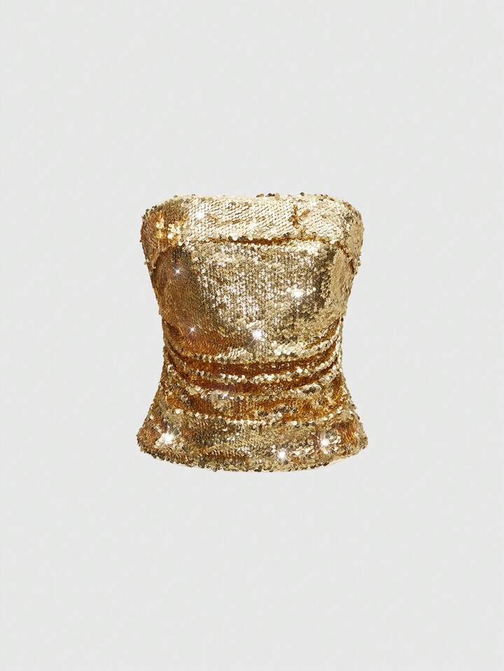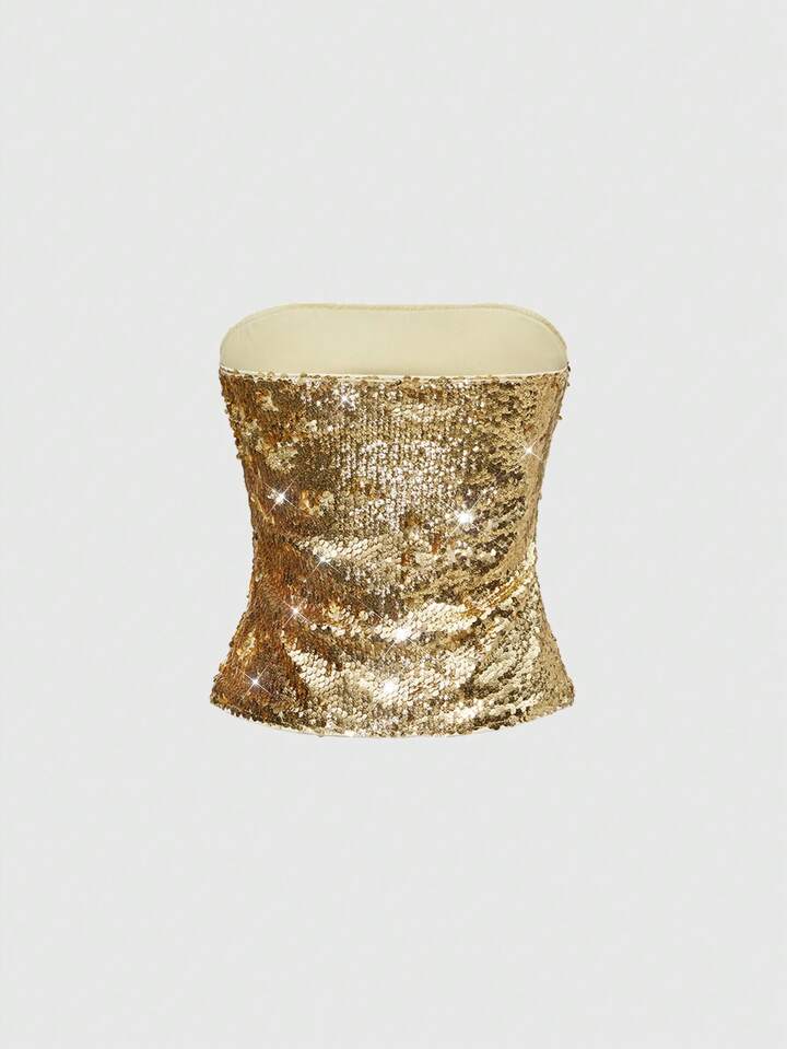ROMWE Avant Women's Fashion Sequin Ruched Waist Bandeau Party Top