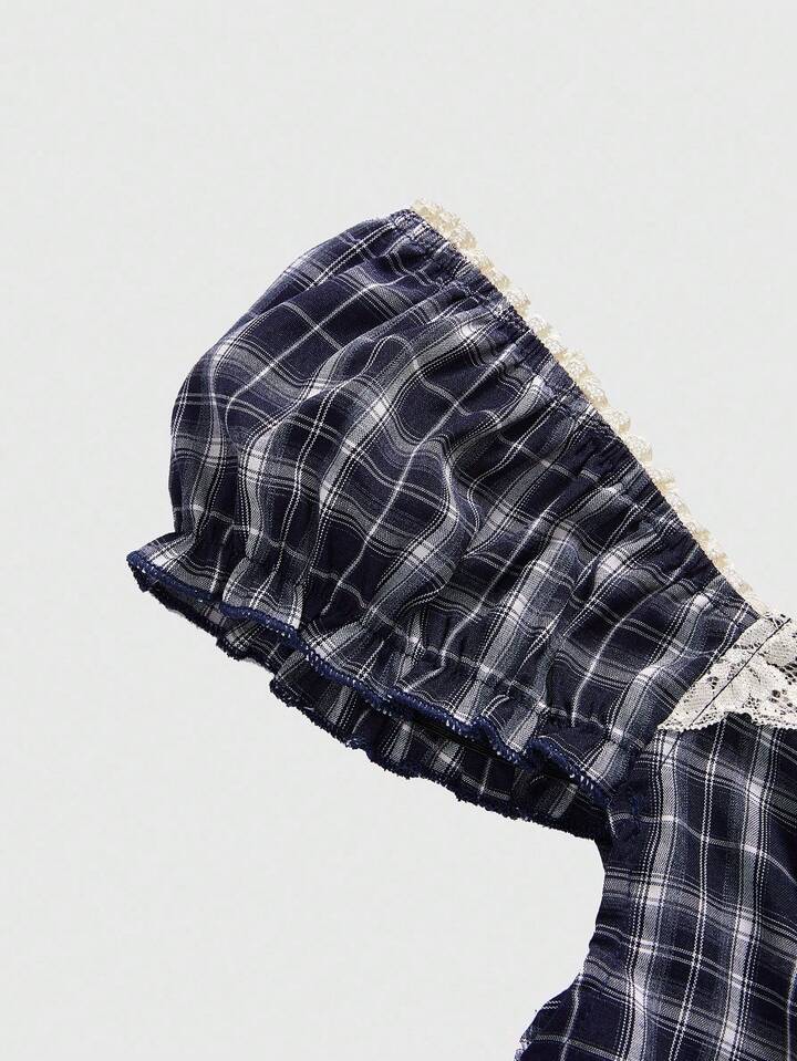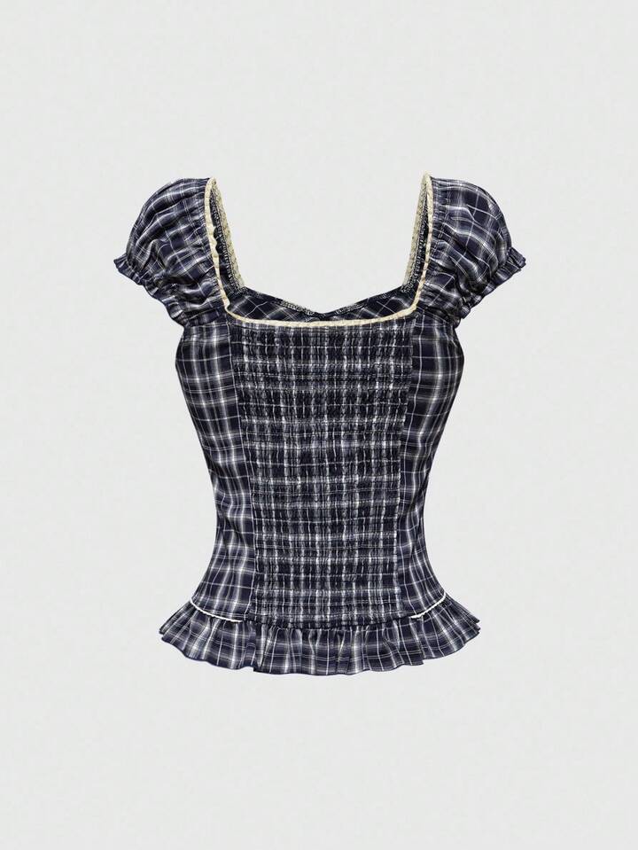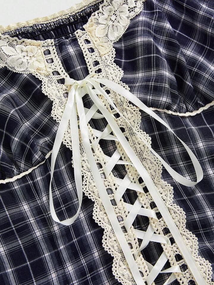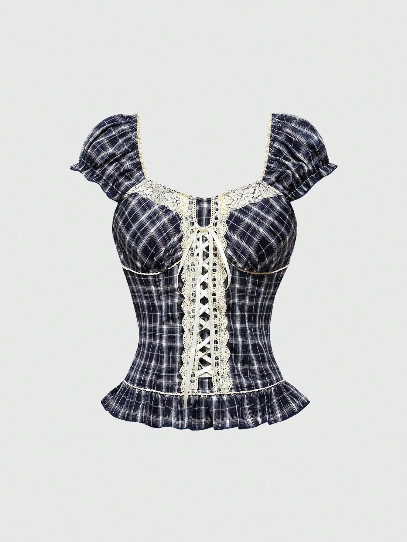 ROMWE Avant Women's Fashionable French Romantic Lace Trim Tie Blouse