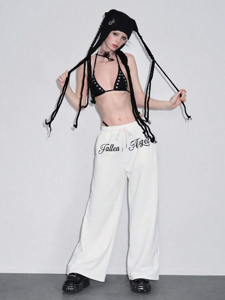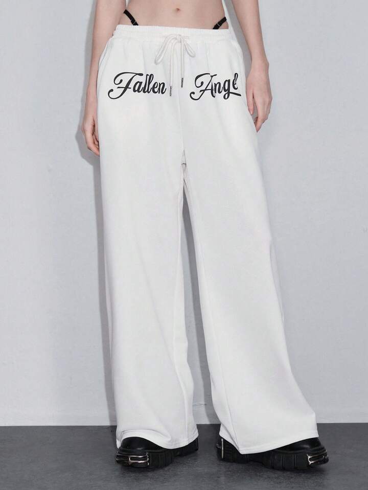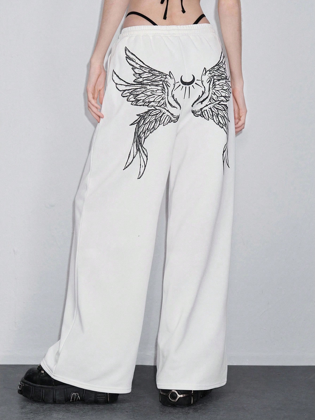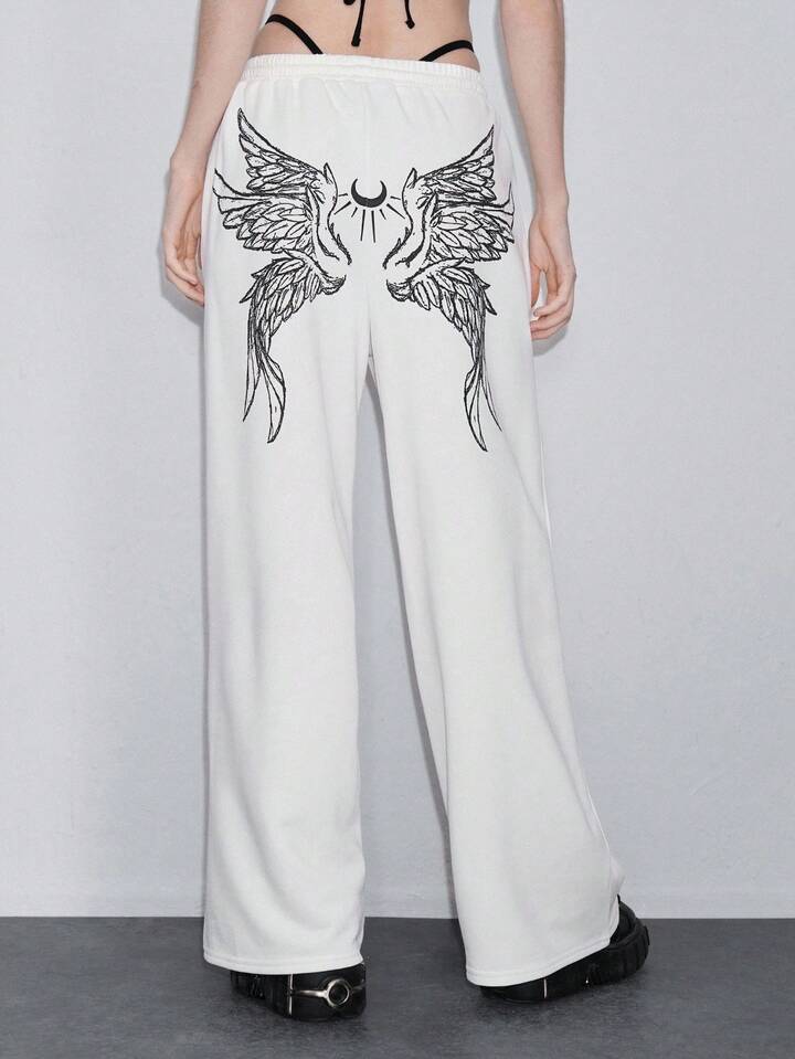 ROMWE Avant Women's Grunge Girl Wing Print Casual Pants