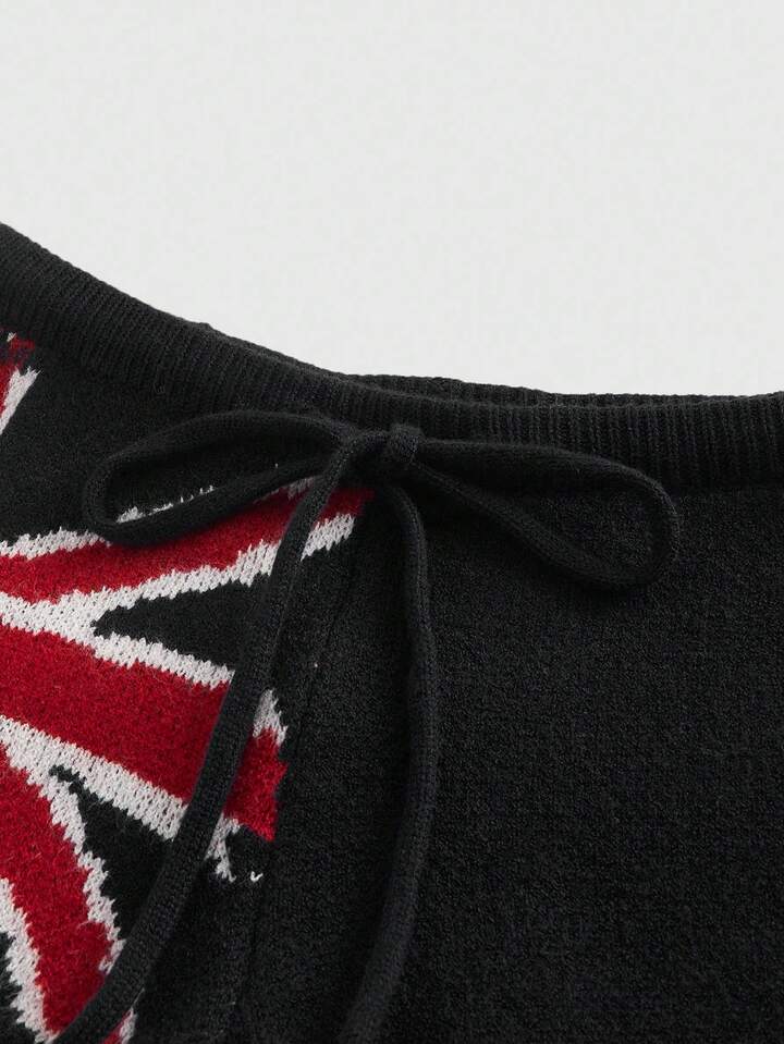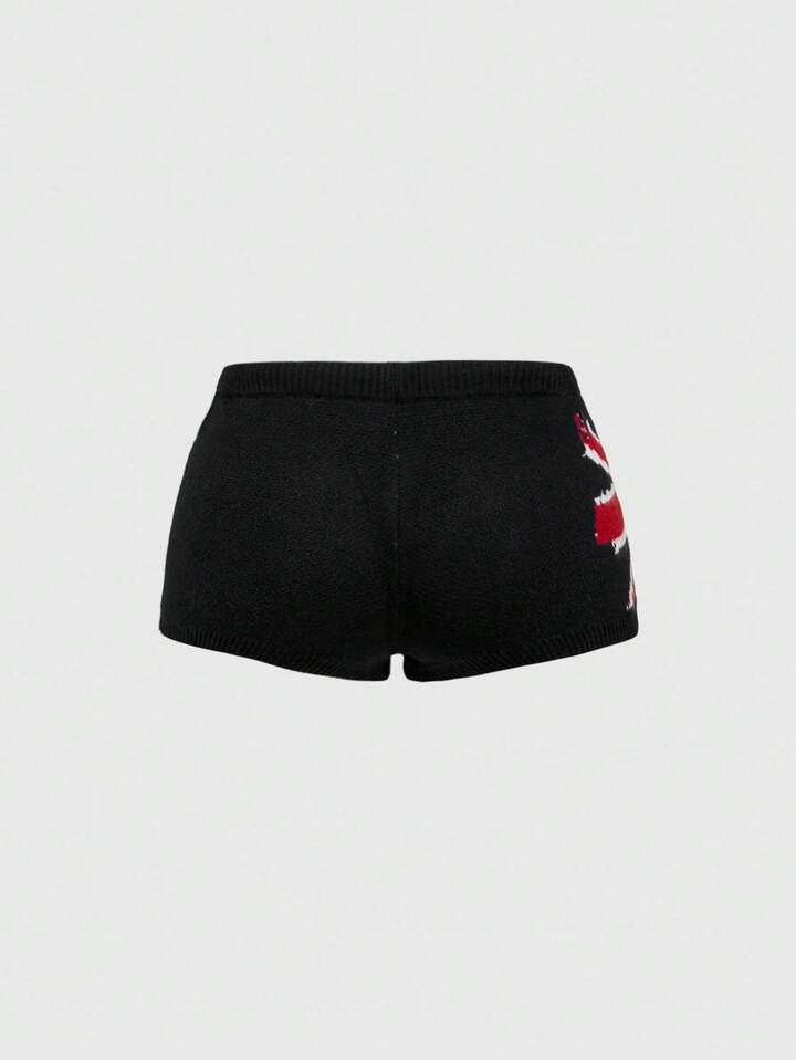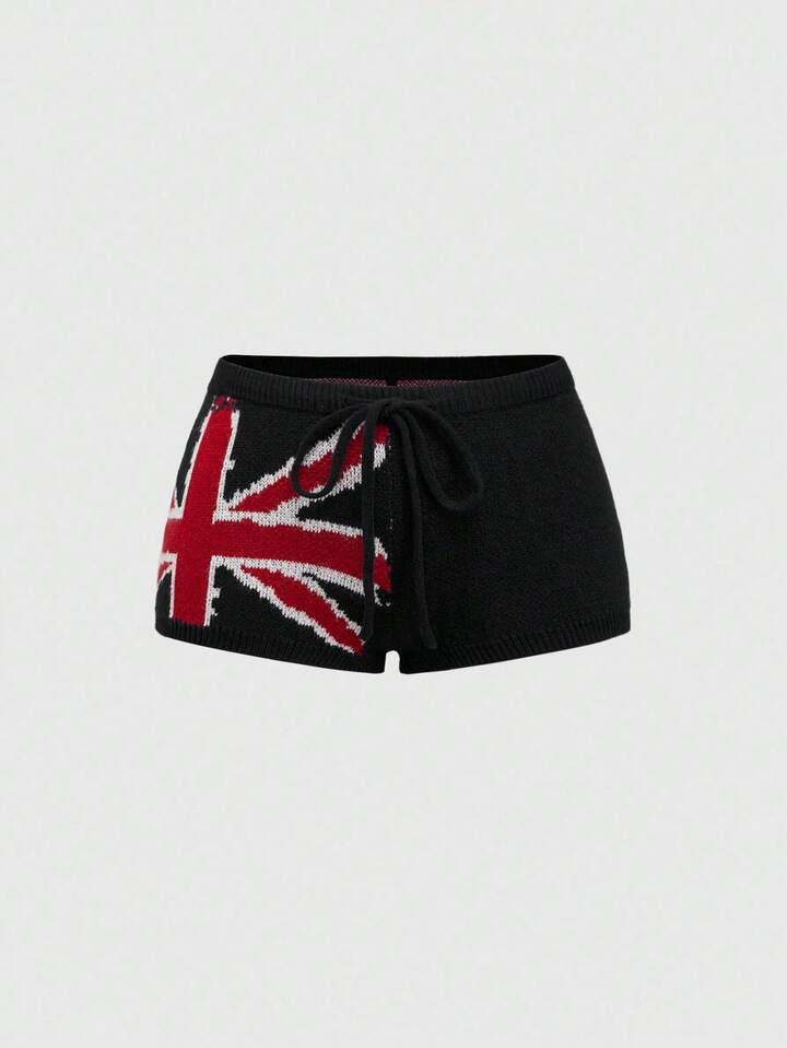 ROMWE Avant Women's Kpop Retro American Street Style Union Jack Jacquard Sweater & Shorts Set