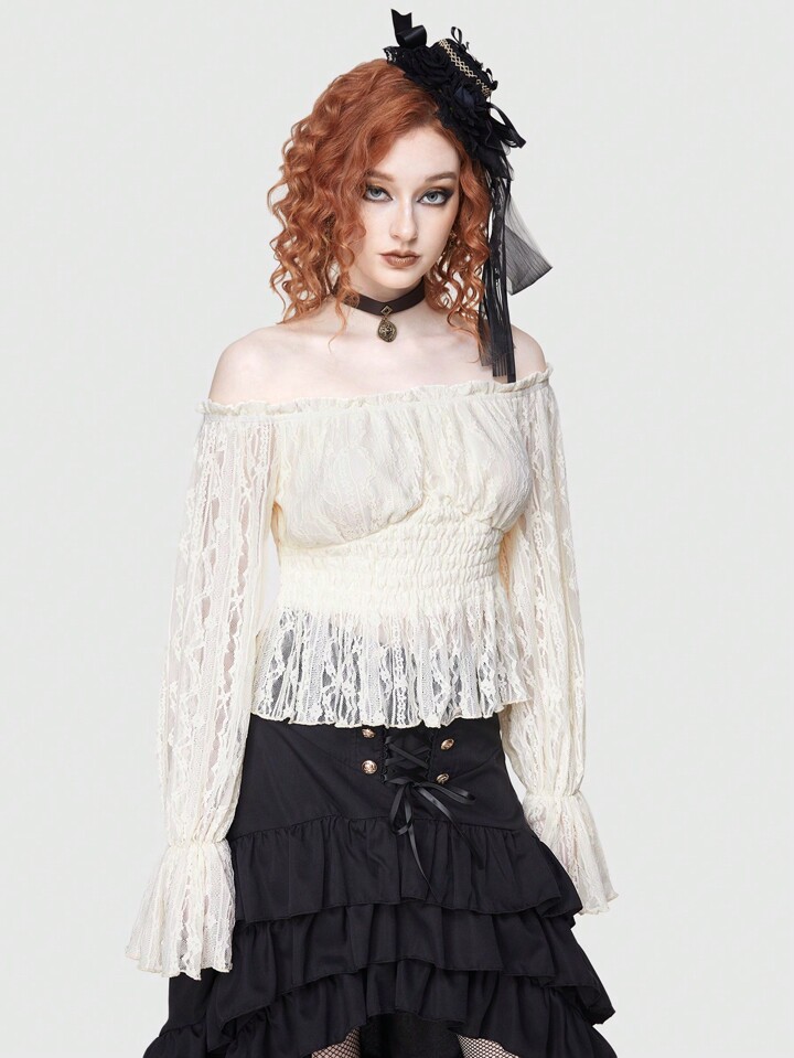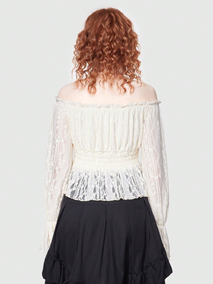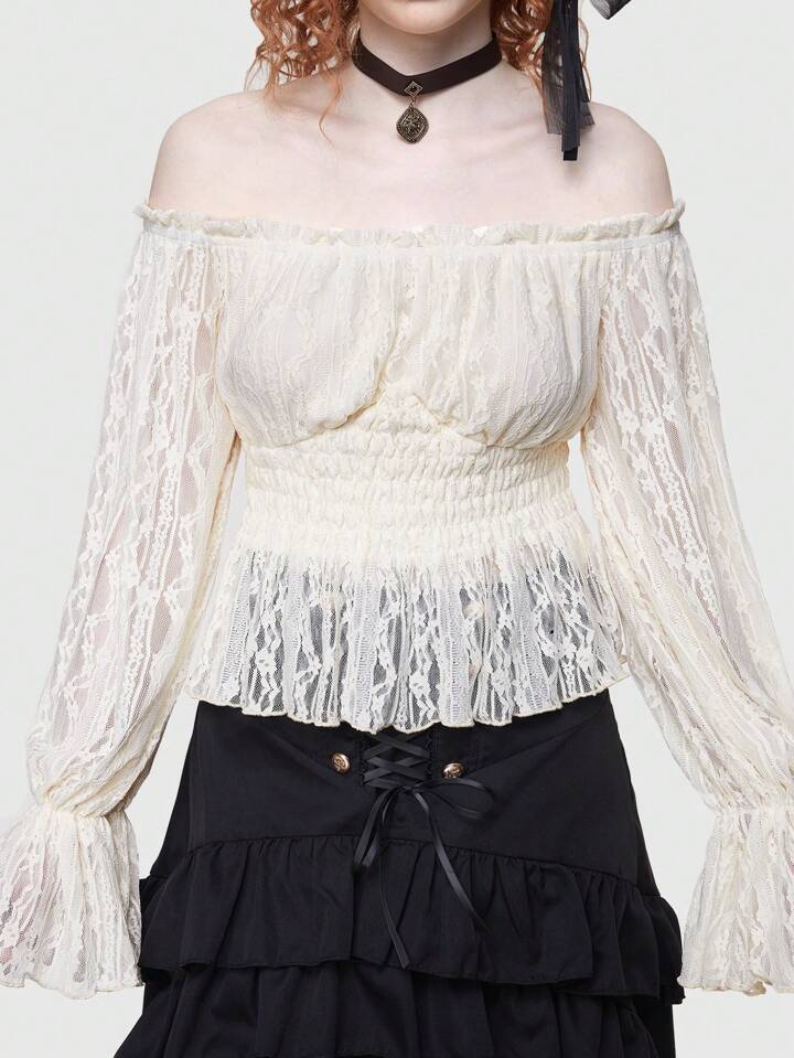 ROMWE Avant Women's Lace Off Shoulder Shirred Blouse