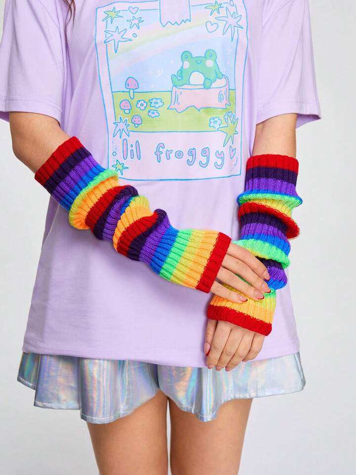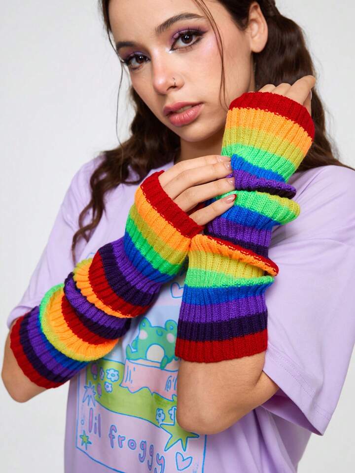 ROMWE Avant Women's Rainbow Knitted Arm Warmers
