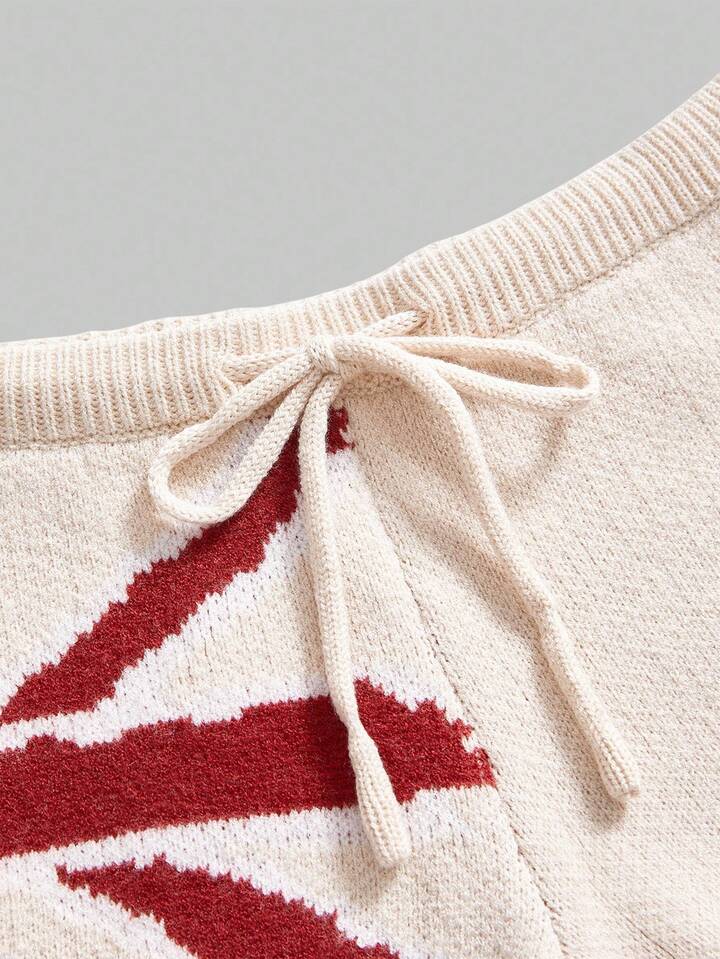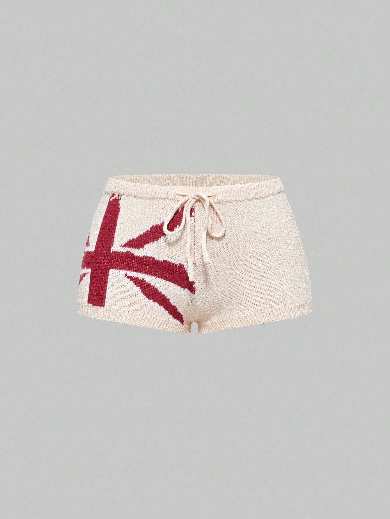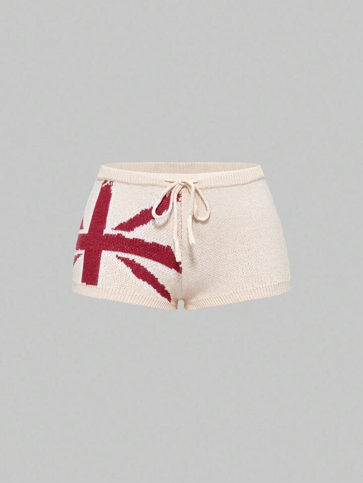 ROMWE Avant Women's Retro American Street Style Union Jack Jacquard Knit Sweater & Shorts Set