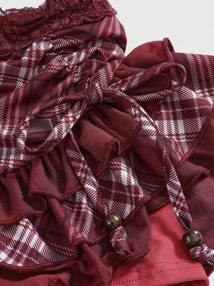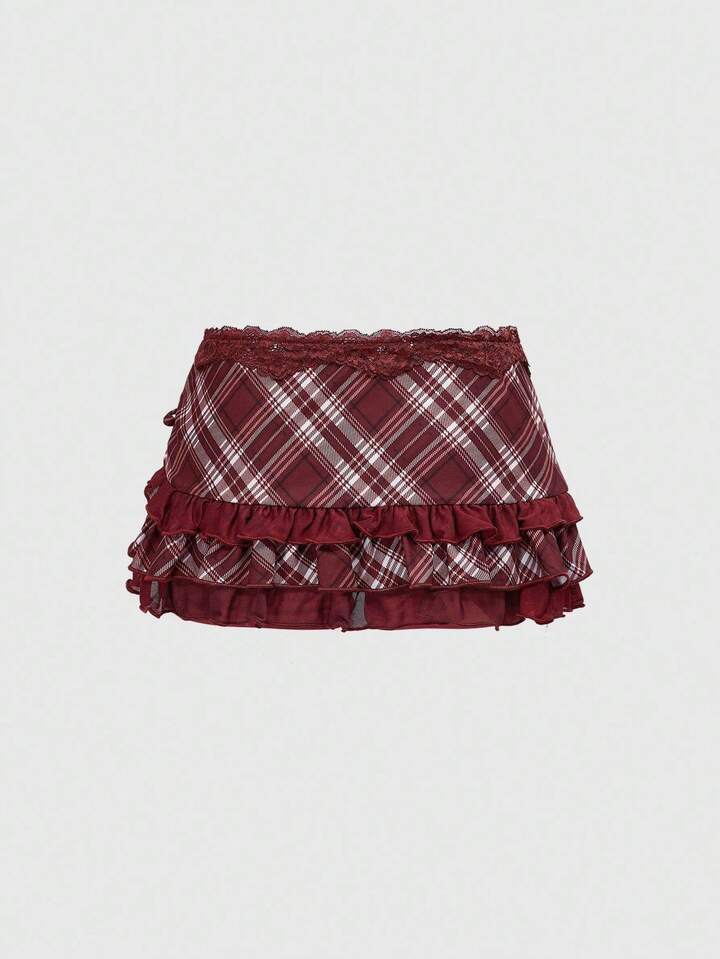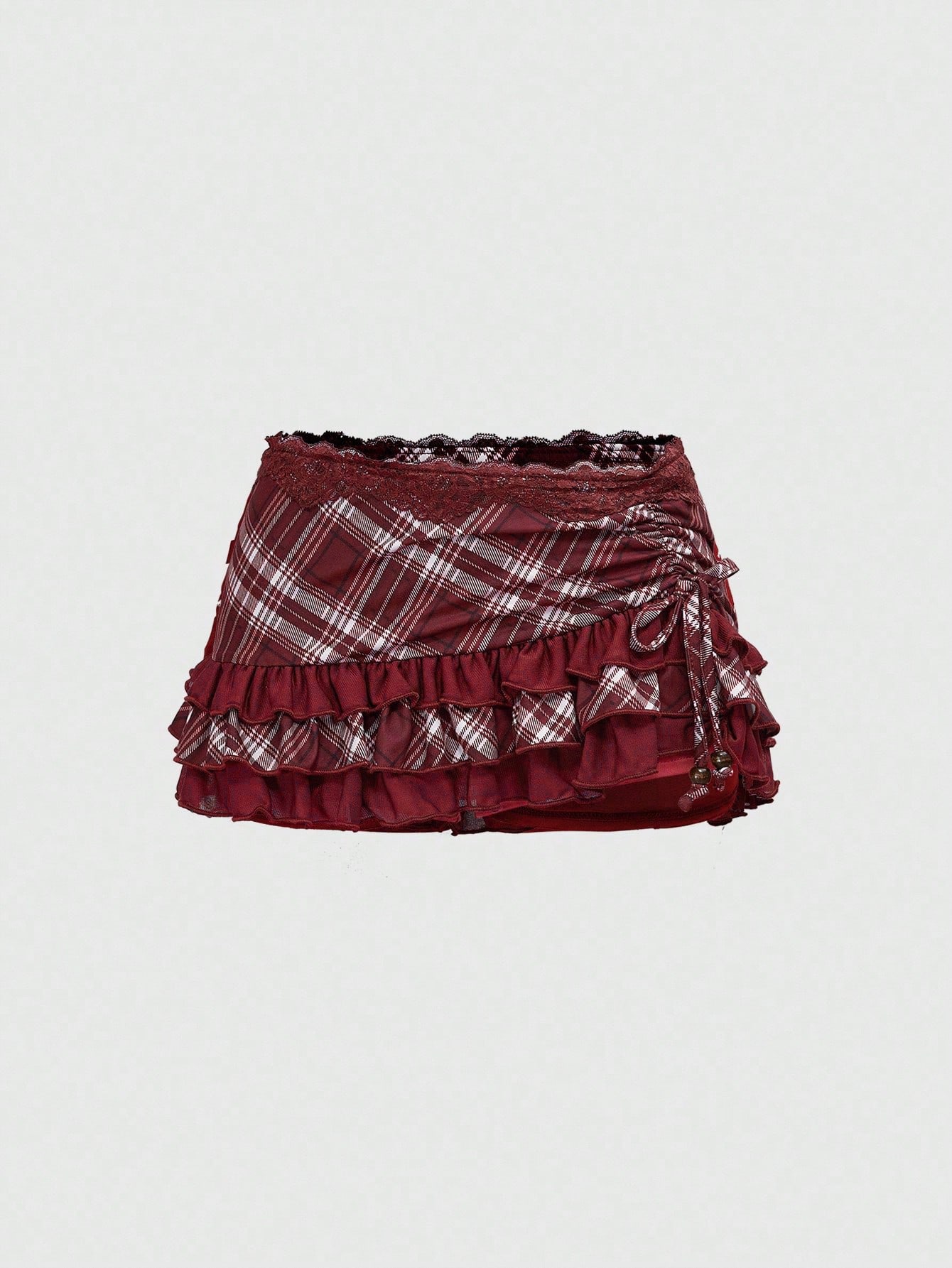 ROMWE Avant Women's Retro Collegiate Style Patterned Lace Patchwork Asymmetrical Mini Skirt