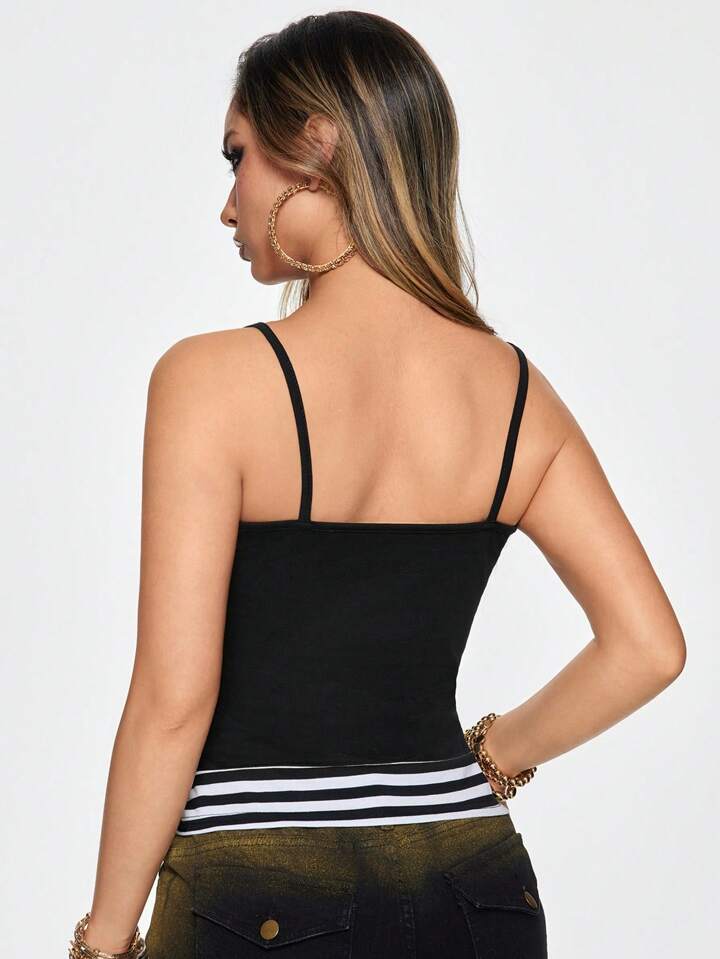 ROMWE Avant Women's Rhinestone Cross & Letter Print Cropped Cami Tank Top