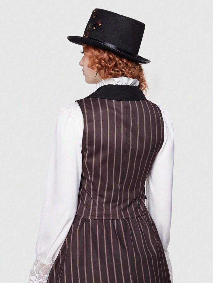 ROMWE Avant Women's Striped Suit Vest With Colorblock Lapel