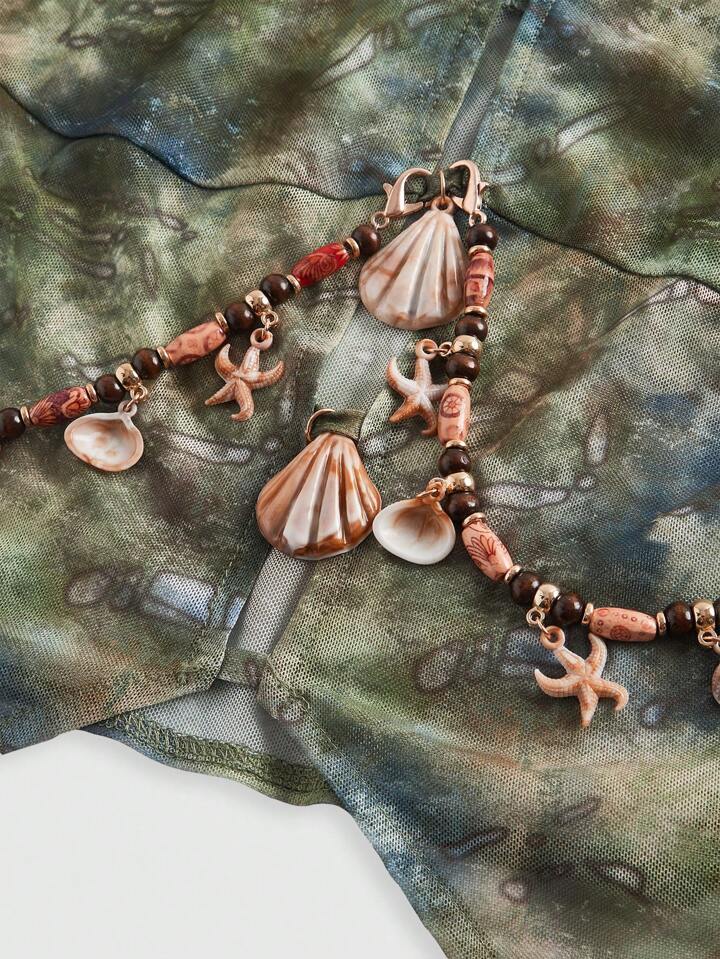 ROMWE Avant Women's Vintage Mermaid Holiday Style Shell Chain Decor Sheer Sexy Tie-Dye Print Halter Top