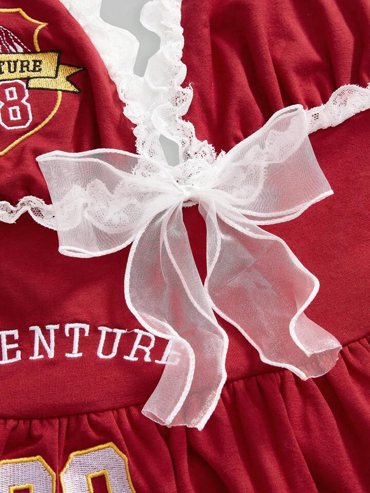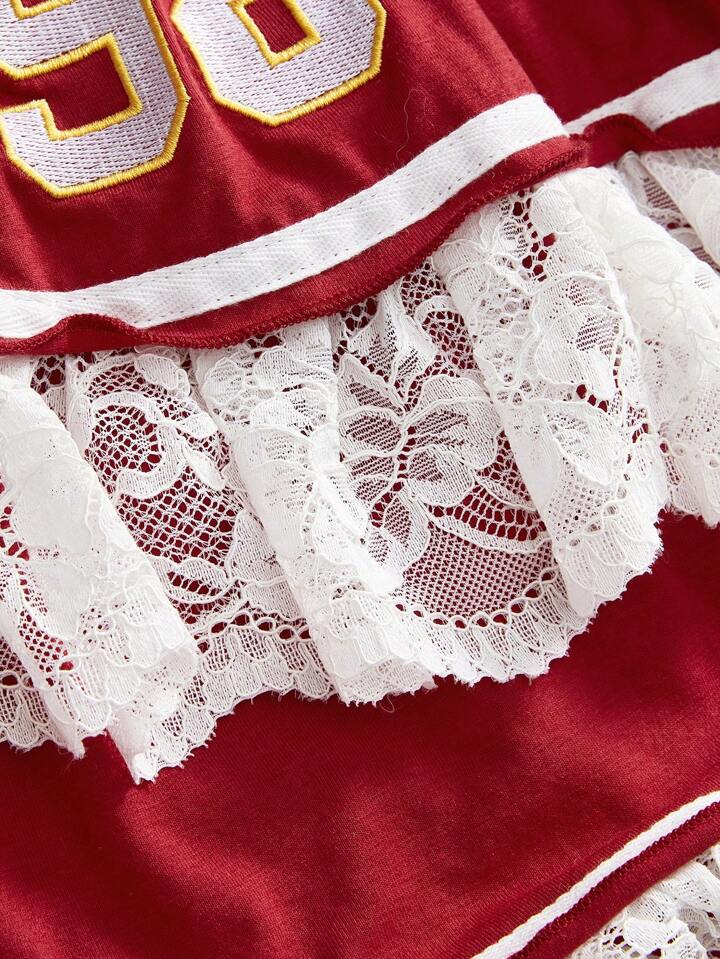 ROMWE Avant Women's Vintage Sporty Ballerina Sensual Pure Lace Trim Letter Embroidered Layered Illusion Neck Cake Dress