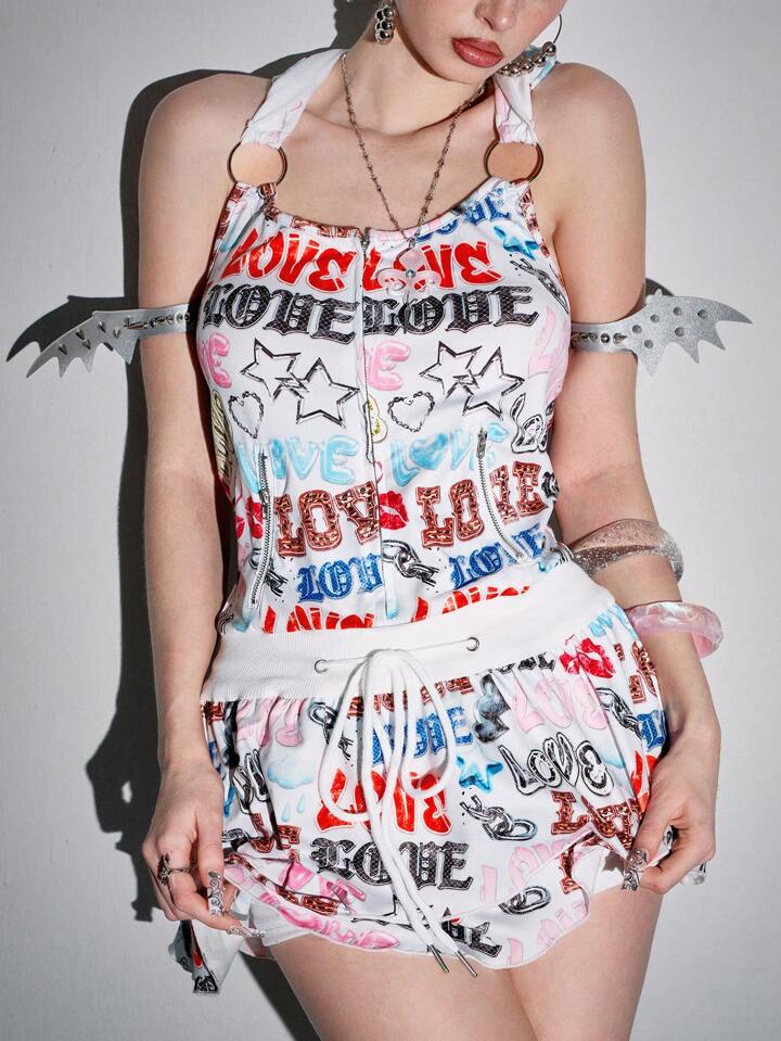 ROMWE Avant Y2K Inspired Hooded Ruffle Front Sweatshirt Mini Dress For Women