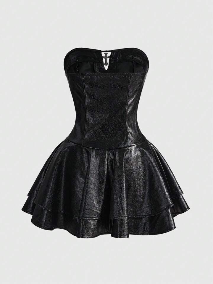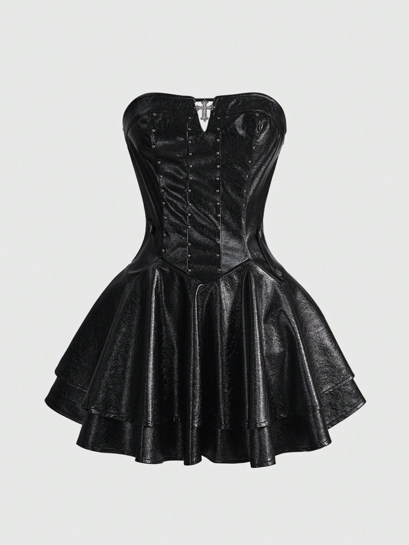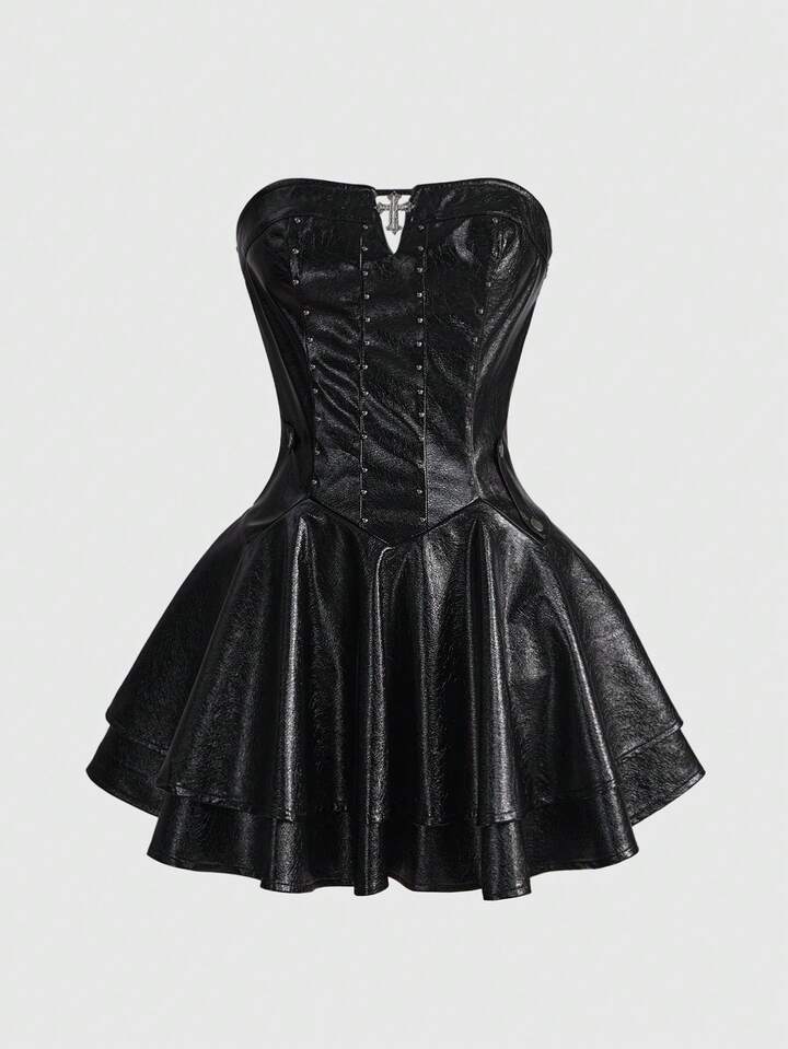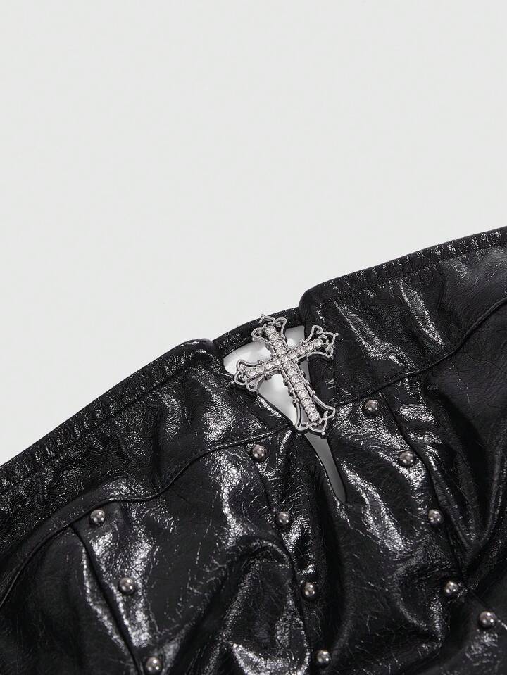 ROMWE Avant Y2K Punk Baddie Metal Cross Pendant PU Mini Edgy Girl Dress