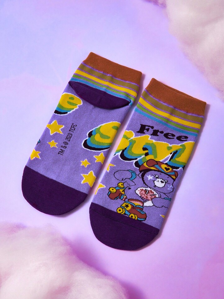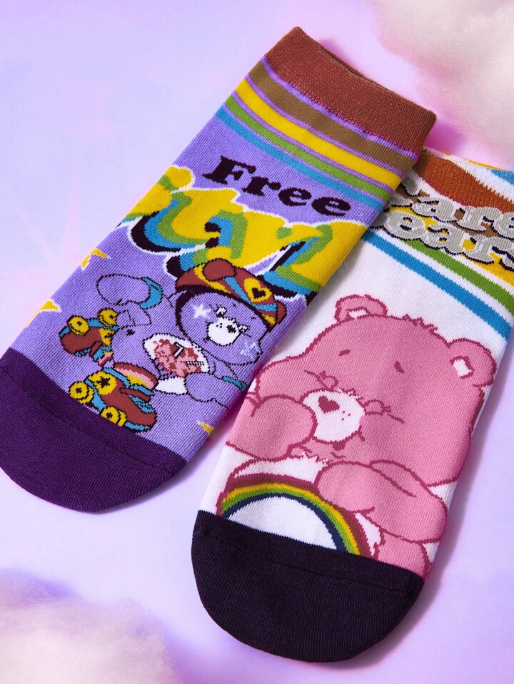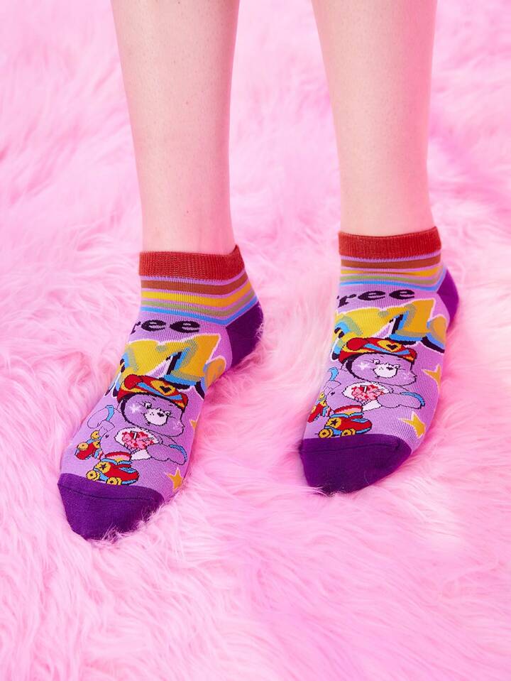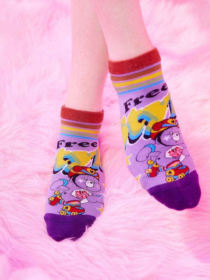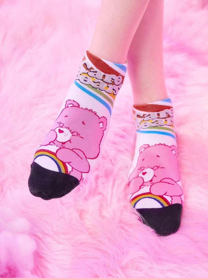 ROMWE X Care Bears 2pairs Women Letter Cartoon Bear Graphic Cute Ankle Socks