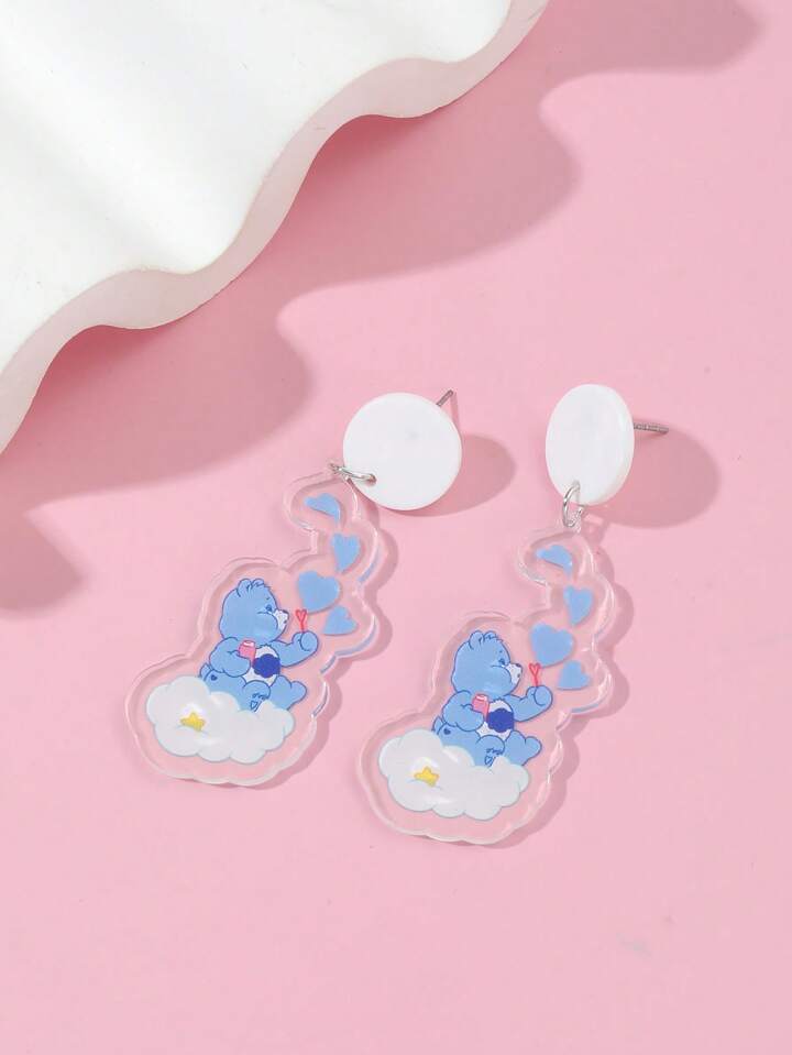 ROMWE X Care Bears 2pcs Cartoon Graphic Drop Earrings