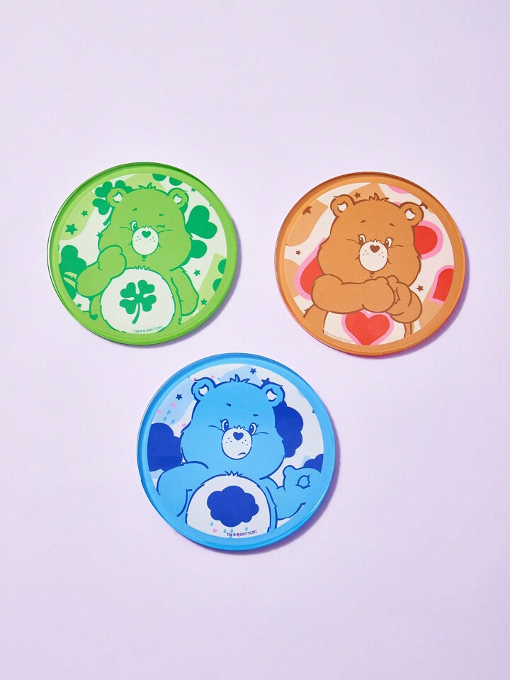 ROMWE X Care Bears 3pcs Cartoon Bear Graphic Coaster,Cute Table Cup Coaster