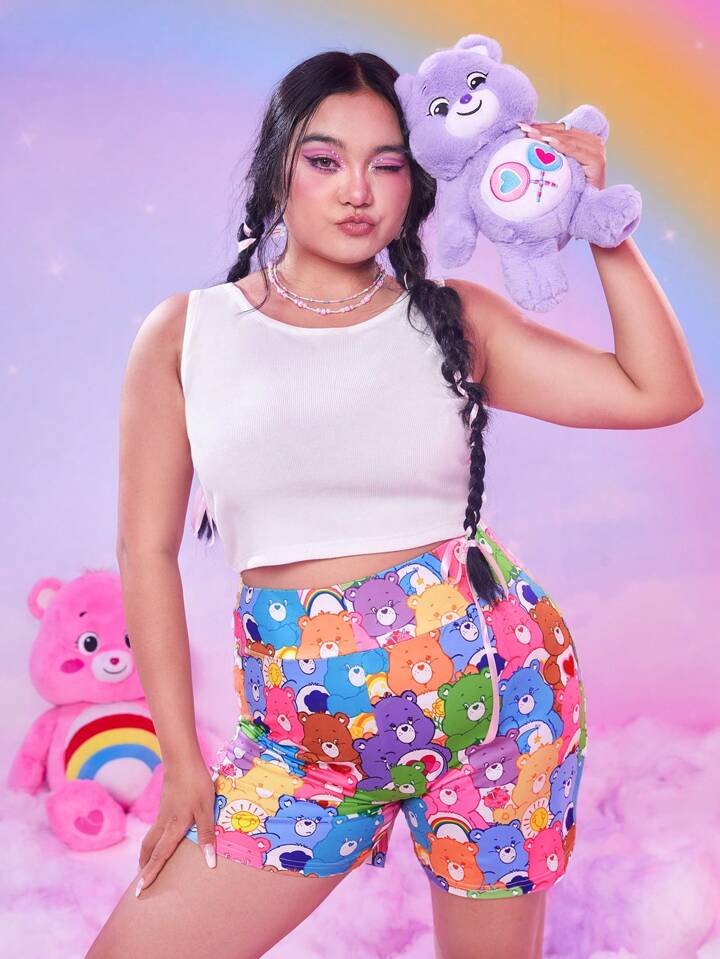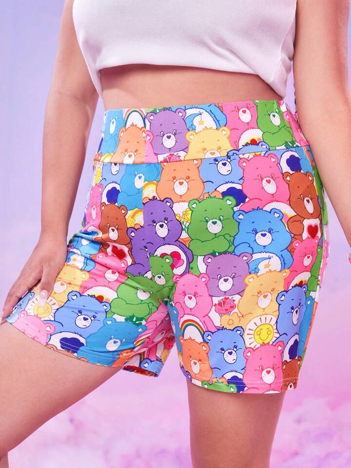 ROMWE X Care Bears Plus Cartoon Graphic Biker Shorts