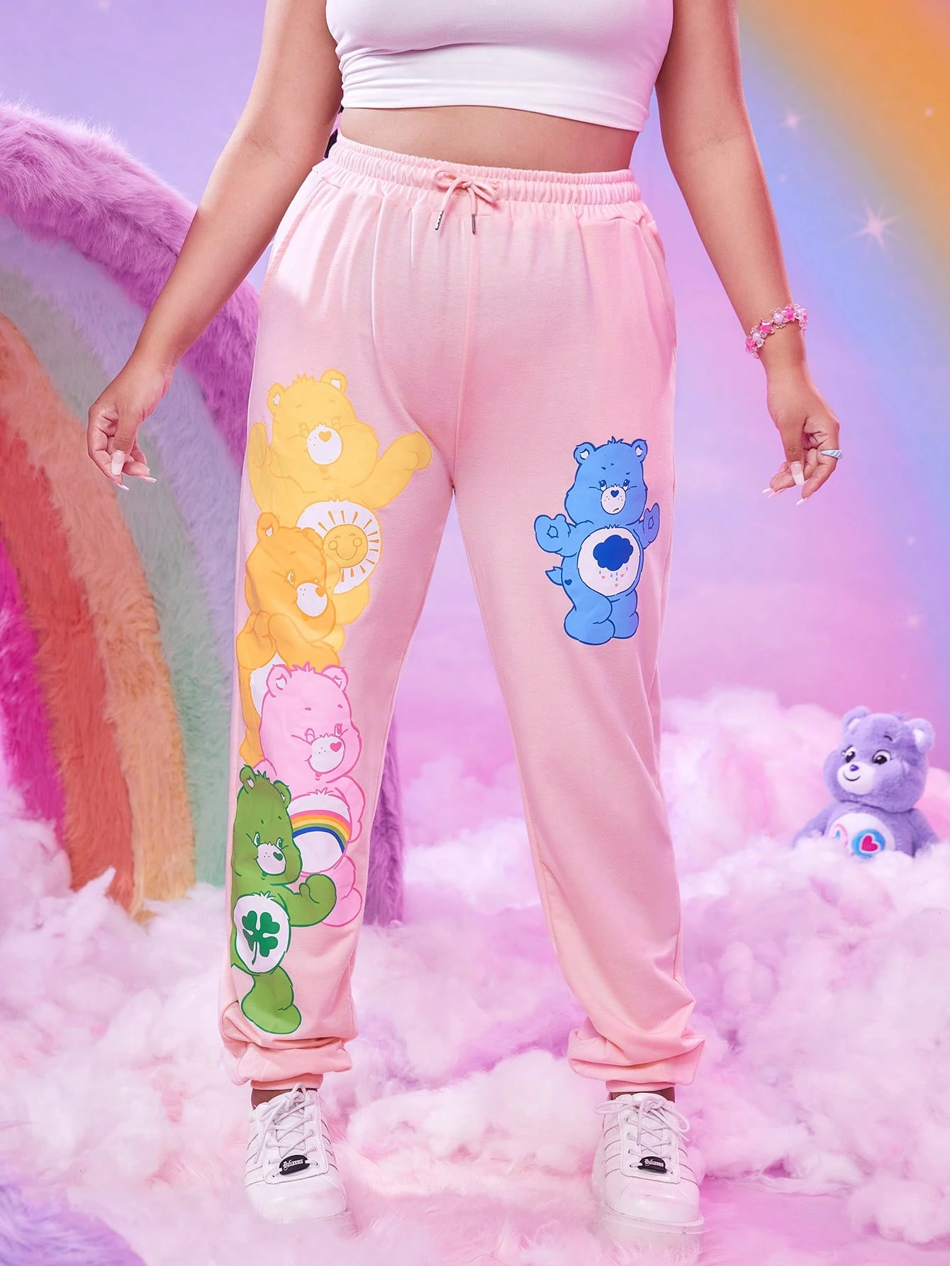 ROMWE X Care Bears Plus Cartoon Graphic Drawstring Waist Sweatpants
