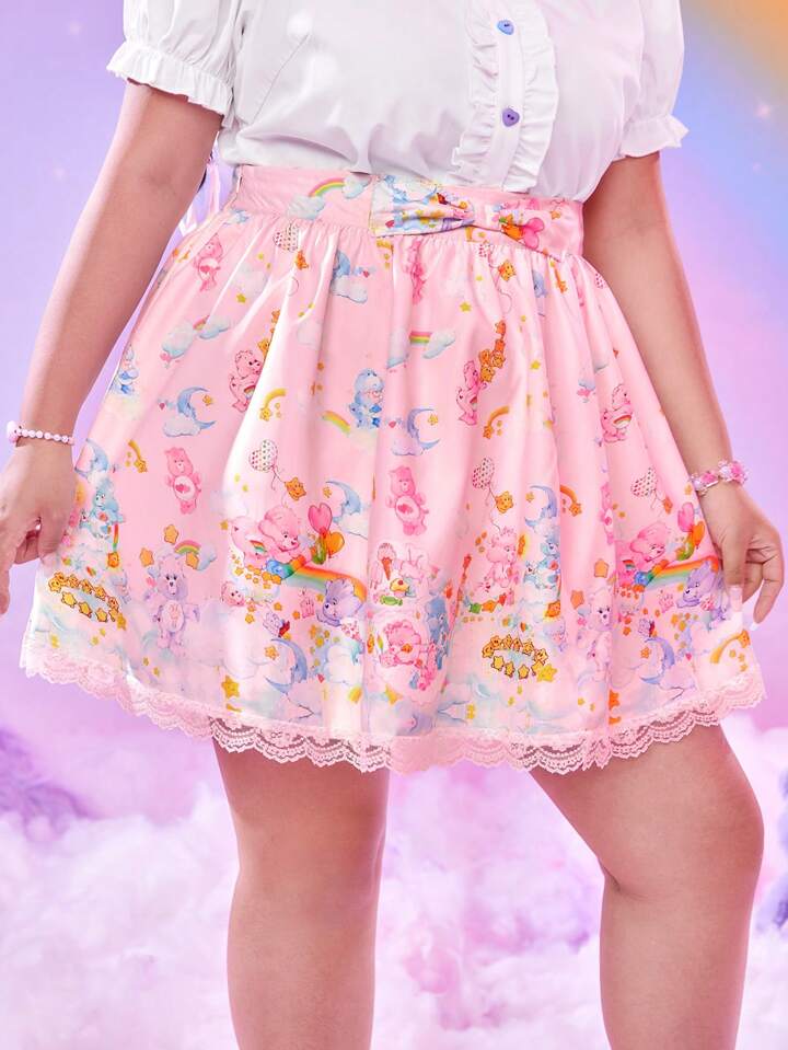 ROMWE X Care Bears Plus Cartoon Graphic Lace Trim Skirt