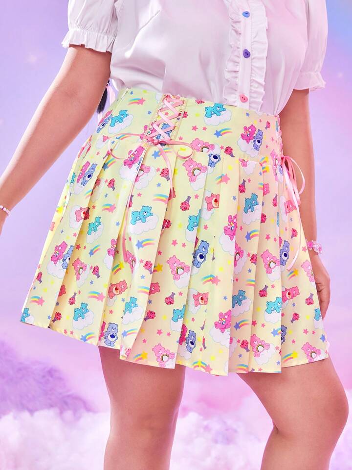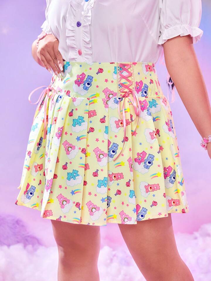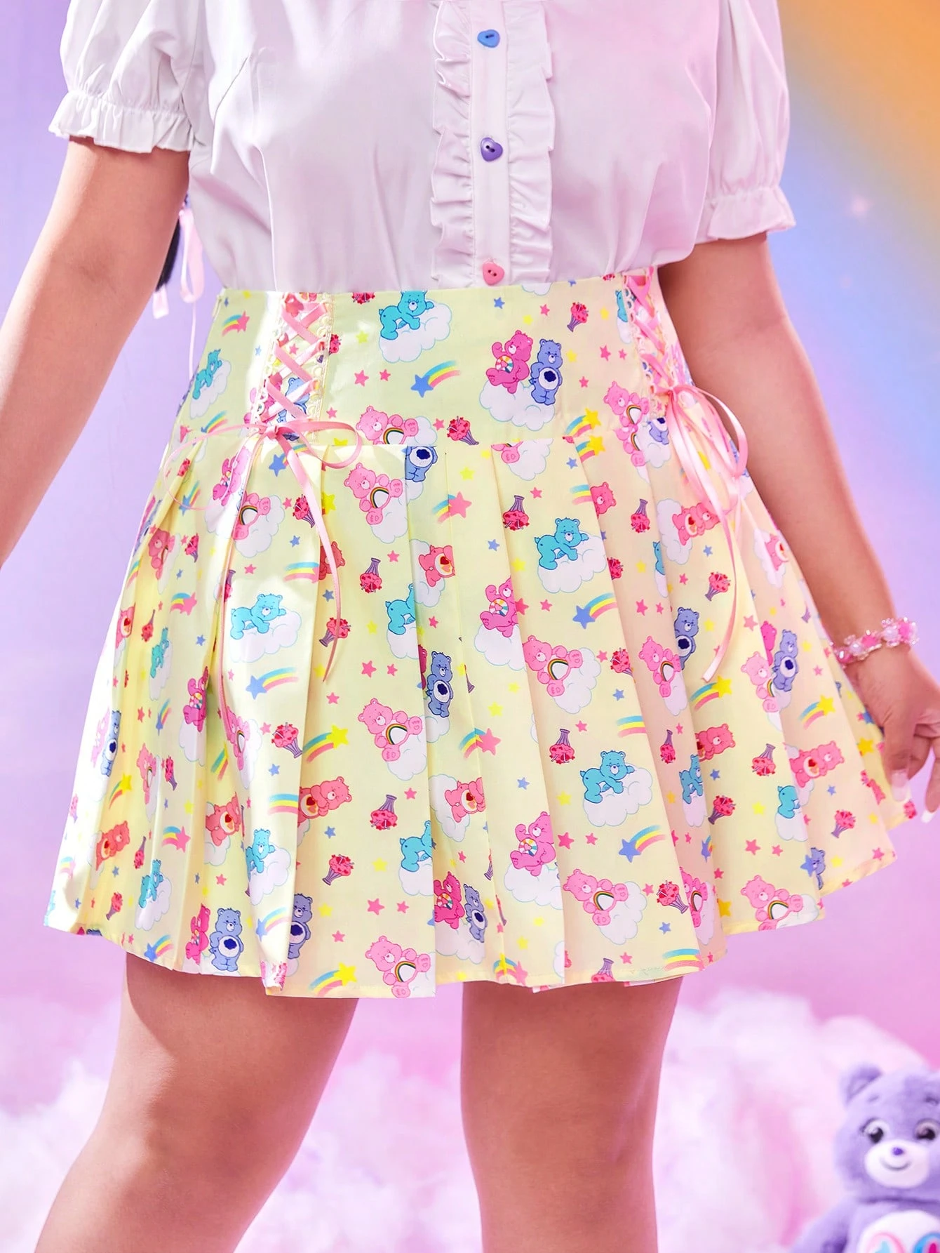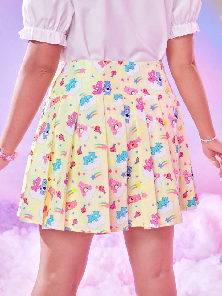 ROMWE X Care Bears Plus Cartoon Print Pleated Skirt