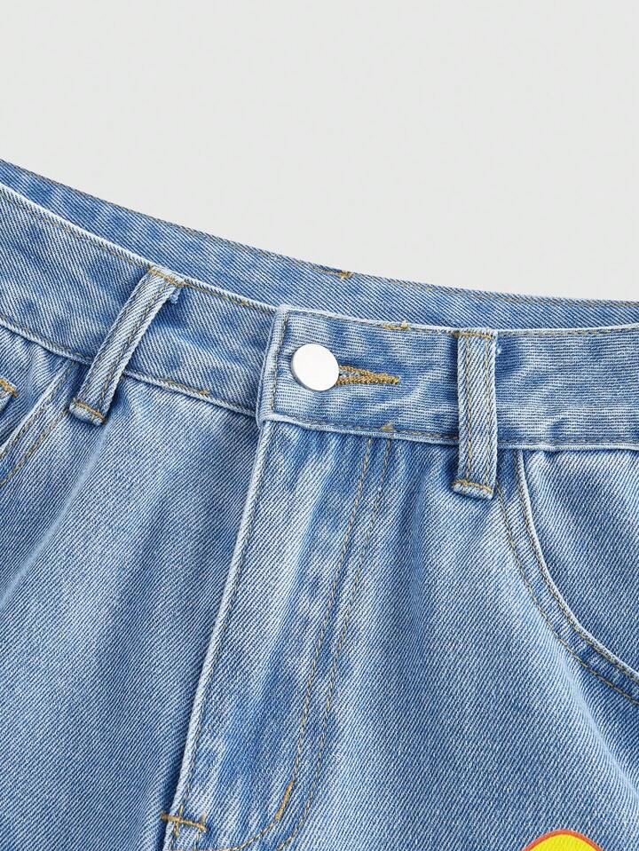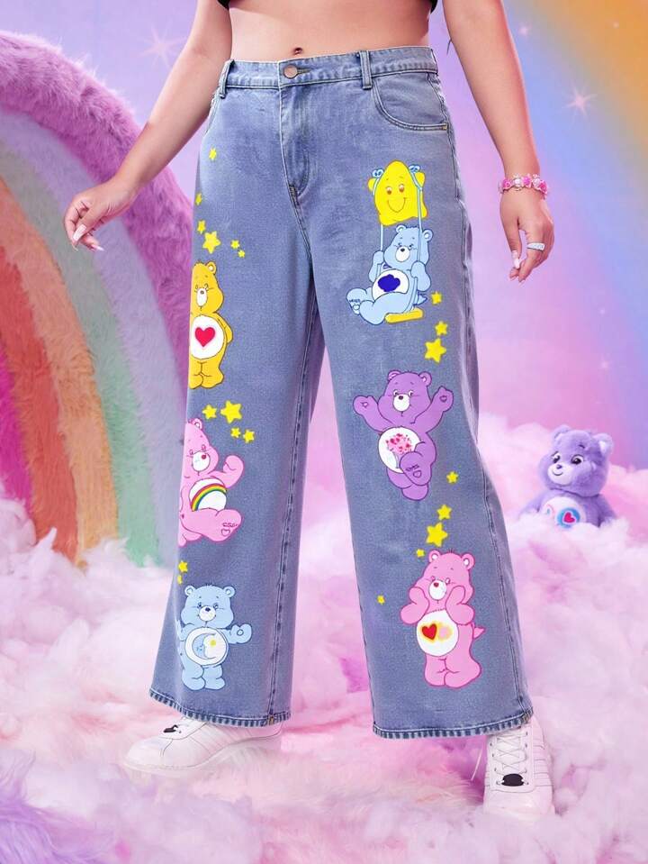 ROMWE X Care Bears Plus Size Cartoon Bear Pattern Slant Pocket Casual Jeans