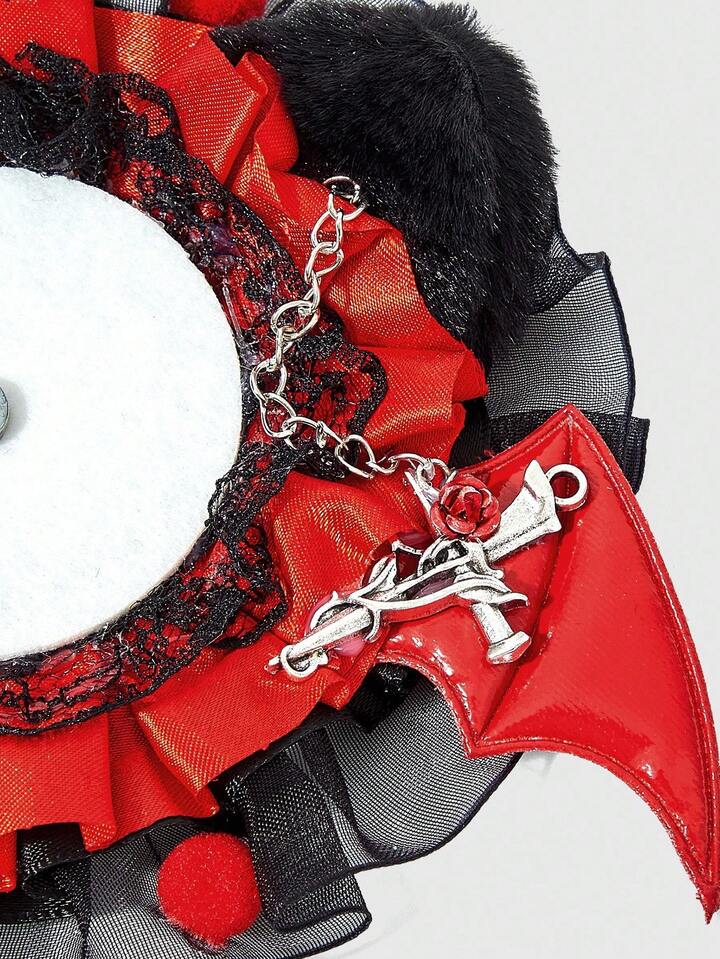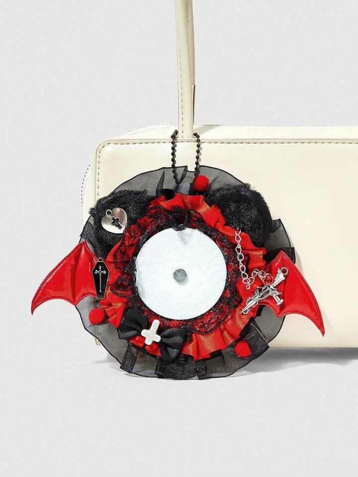 Red Bat Wing Lace Trim Bag Charm, Handmade Tassel Pendant, Casual Fashion Anime Style Retro Chic Brooch Bag Accessory, Halloween