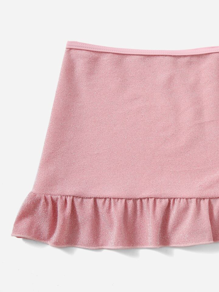 Retro 3packs Glitter High Cut Summer Beach Bikini Set & Ruffle Hem Skirt