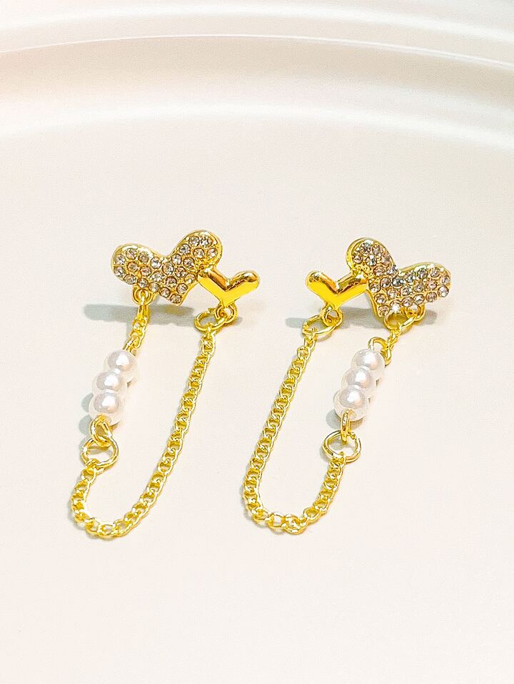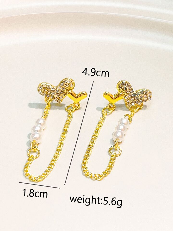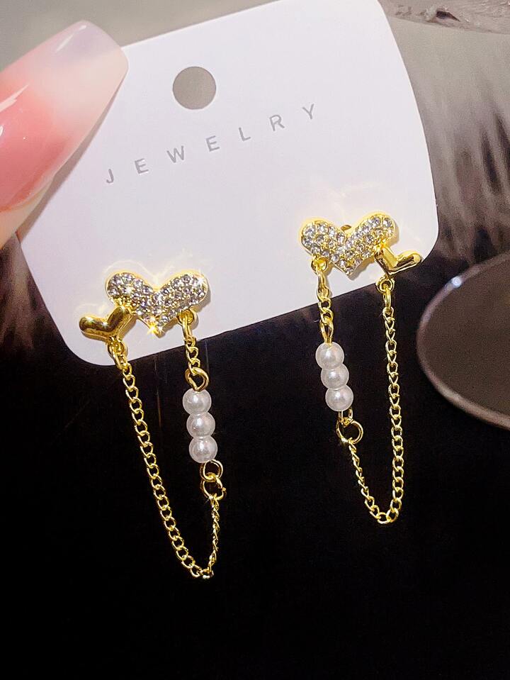 Rhinestone Heart & Faux Pearl Decor Drop Earrings