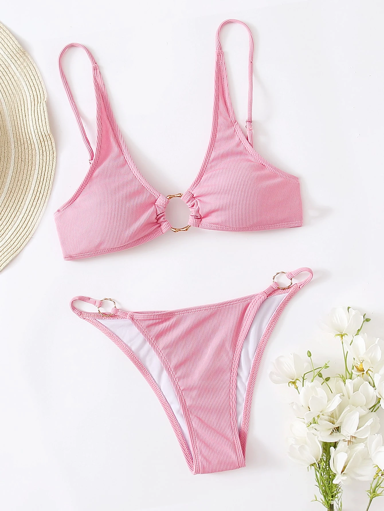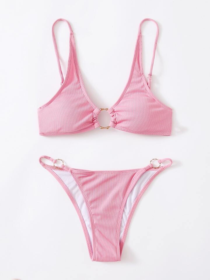 Ribbed Ring Decor Bikini Set Summer Beach