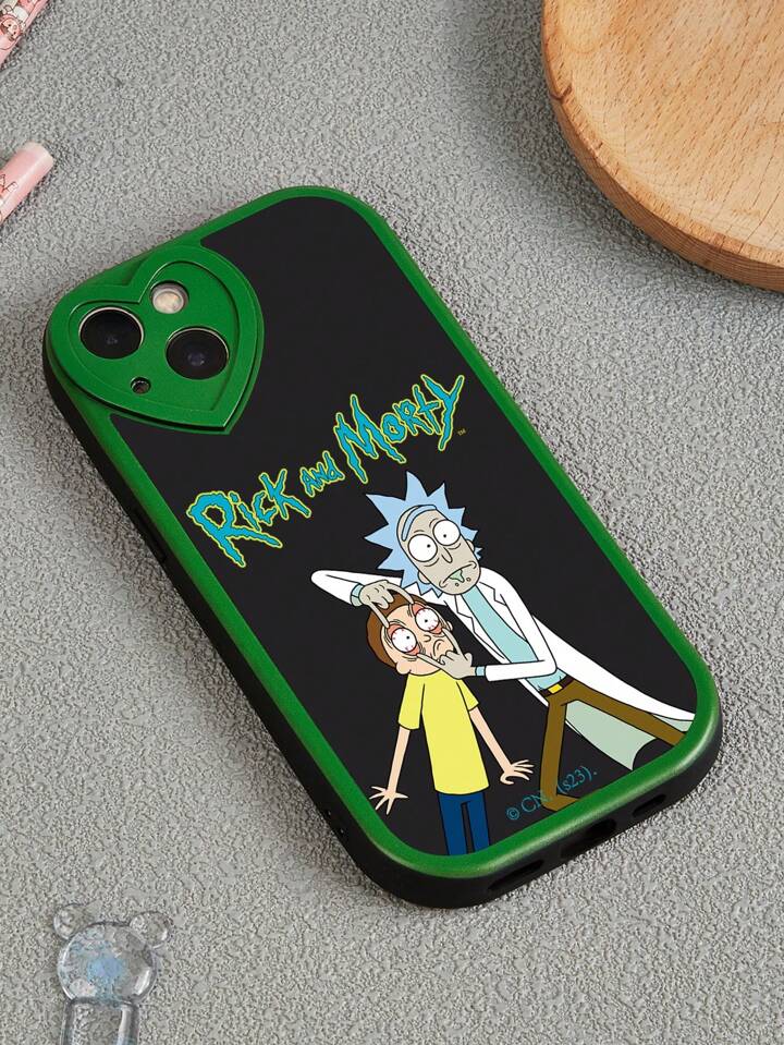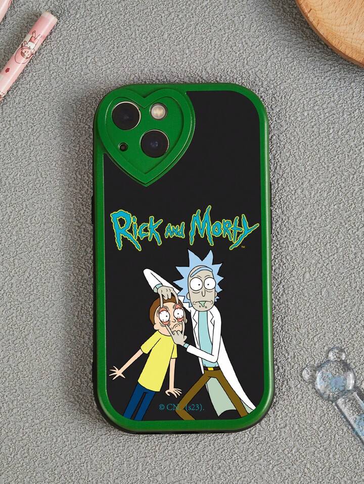 Rick and Morty | ROMWE 1pc Big Eye Heart Design Black Mobile Phone Case Compatible With IPhone And Other Models