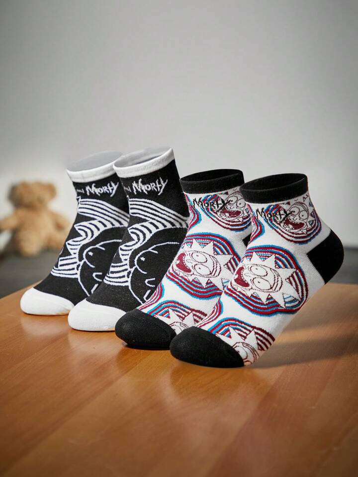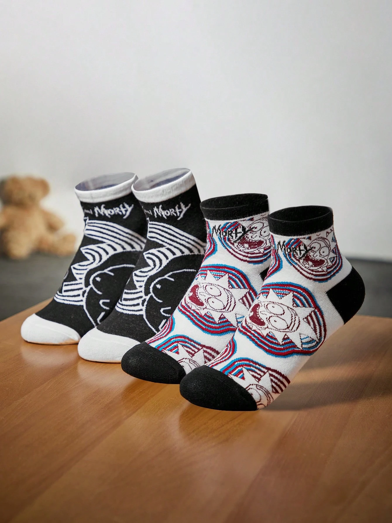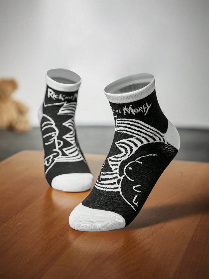Rick and Morty | ROMWE 2pairs Women Letter Cartoon Pattern Ankle Socks