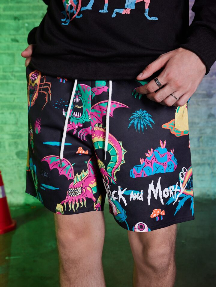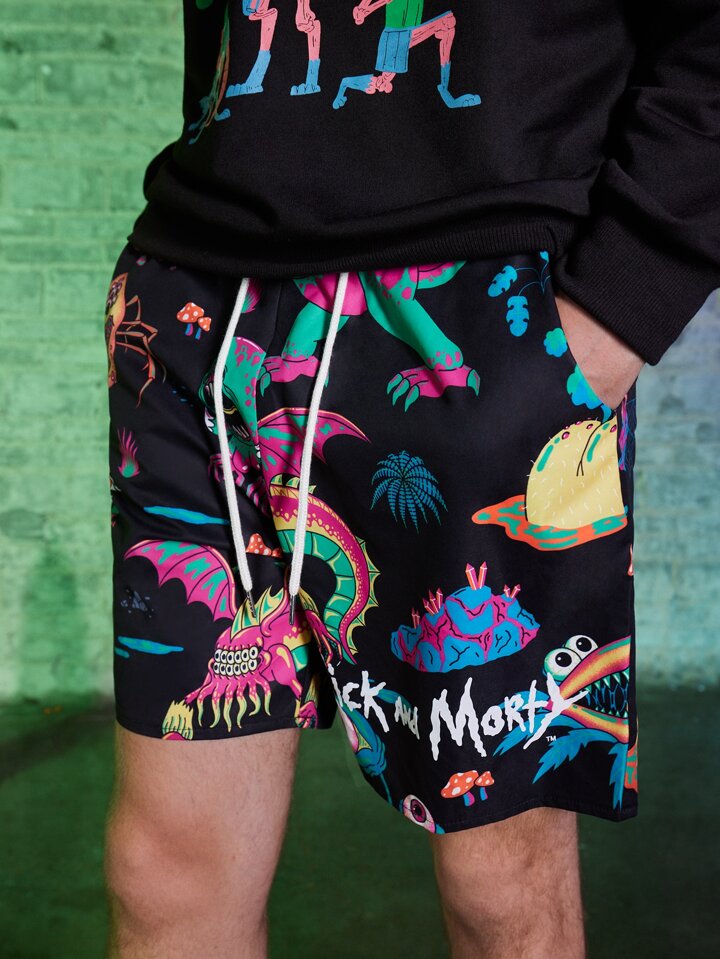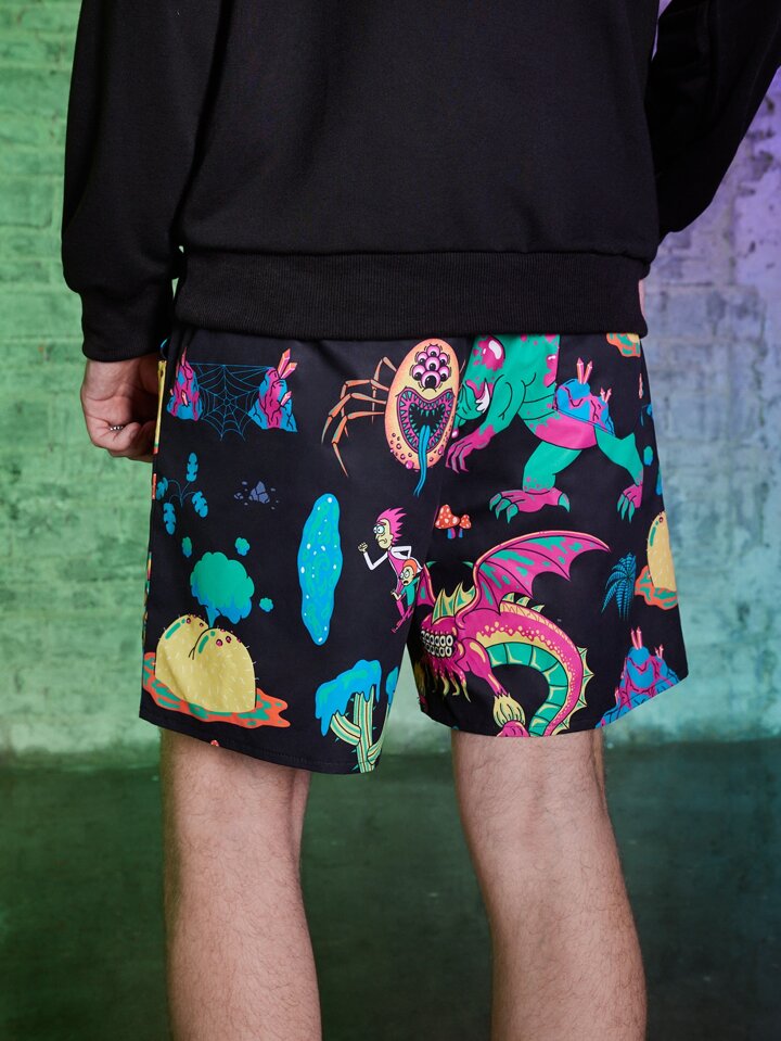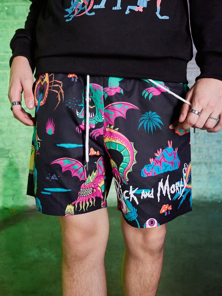 Rick and Morty | ROMWE Guys Letter Cartoon Graphic Drawstring Shorts