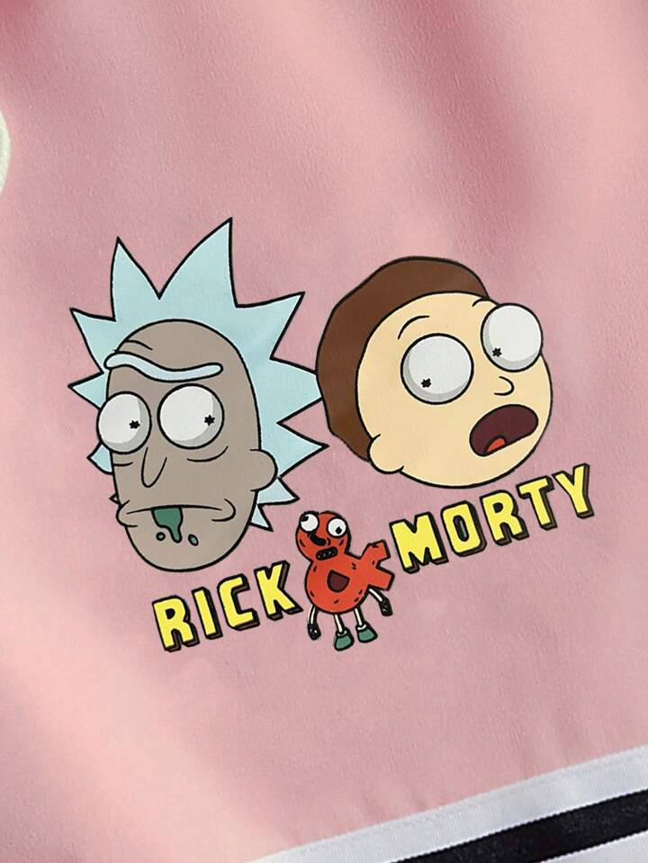 Rick and Morty | ROMWE Men's Cartoon Printed Striped Trim Basketball Shorts, School