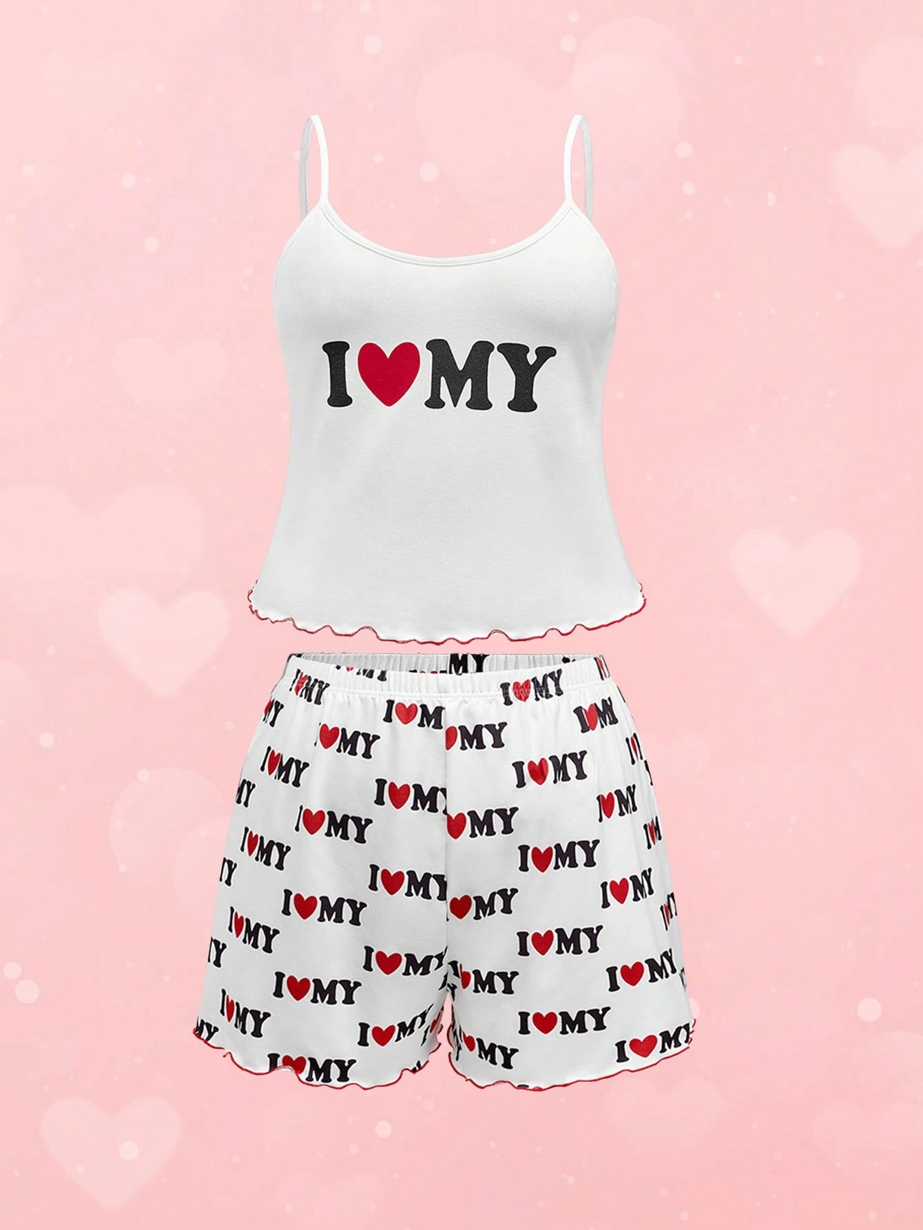 Romantic Valentine's Day Plus Size "I Love My" Camisole & Shorts Sleepwear Set