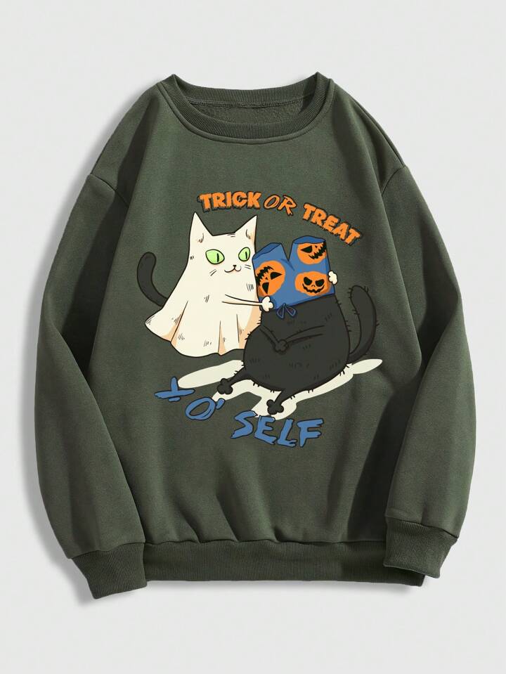Rosie Slogan Halloween Cat Graphic Thermal Sweatshirt