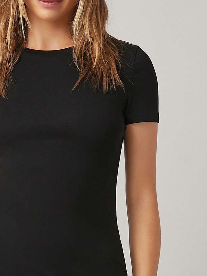 Round Neck Solid Bodycon Dress
