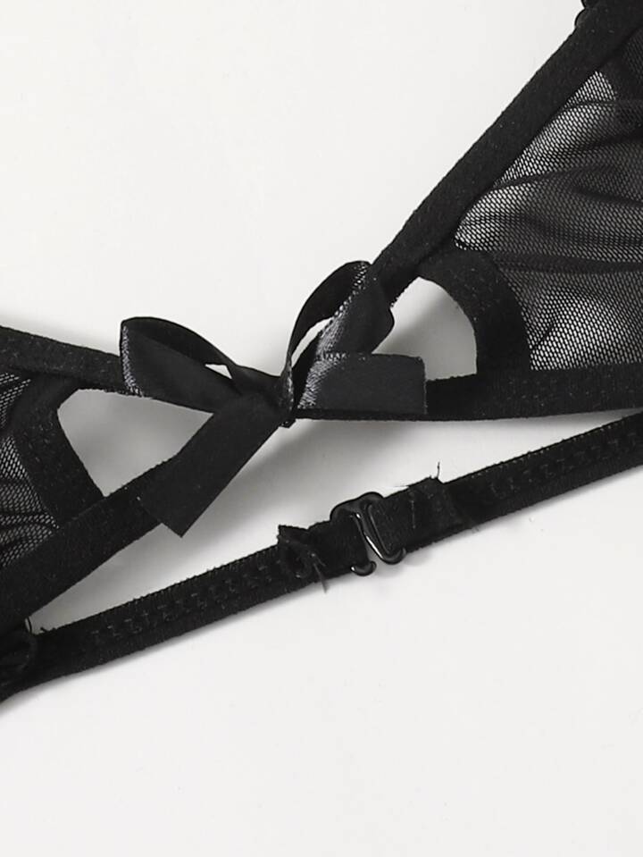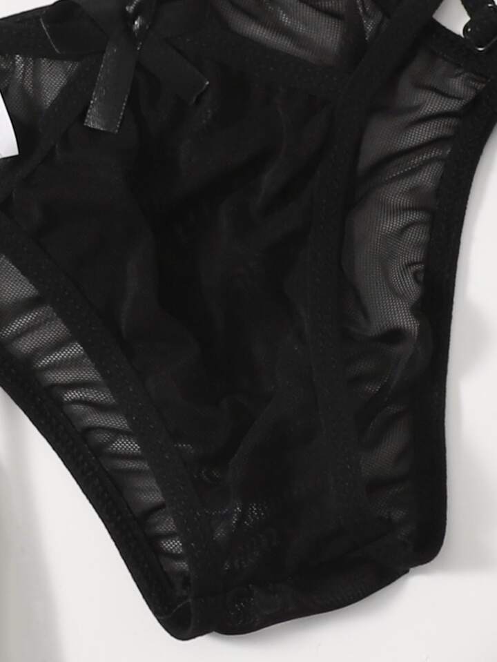 Ruffle Trim Mesh Garter Lingerie Set