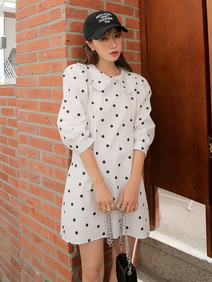 Ruffle Trim Peter Pan Collar Polka Dot Dress