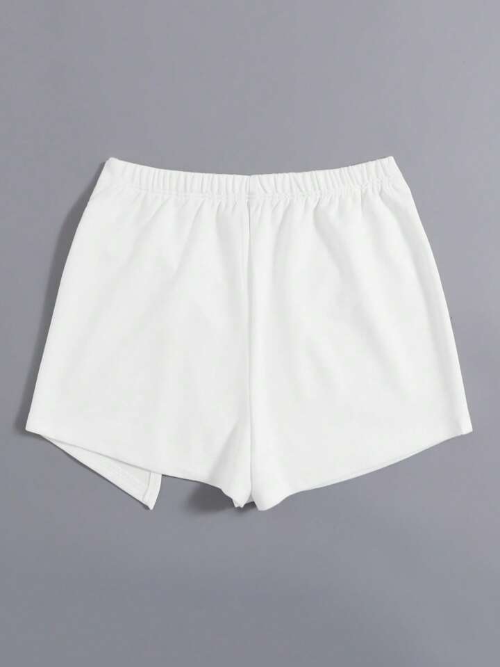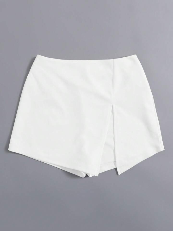 SHEIN Short-Saia Com Cintura Elástica E Fenda Frontal White Summer White