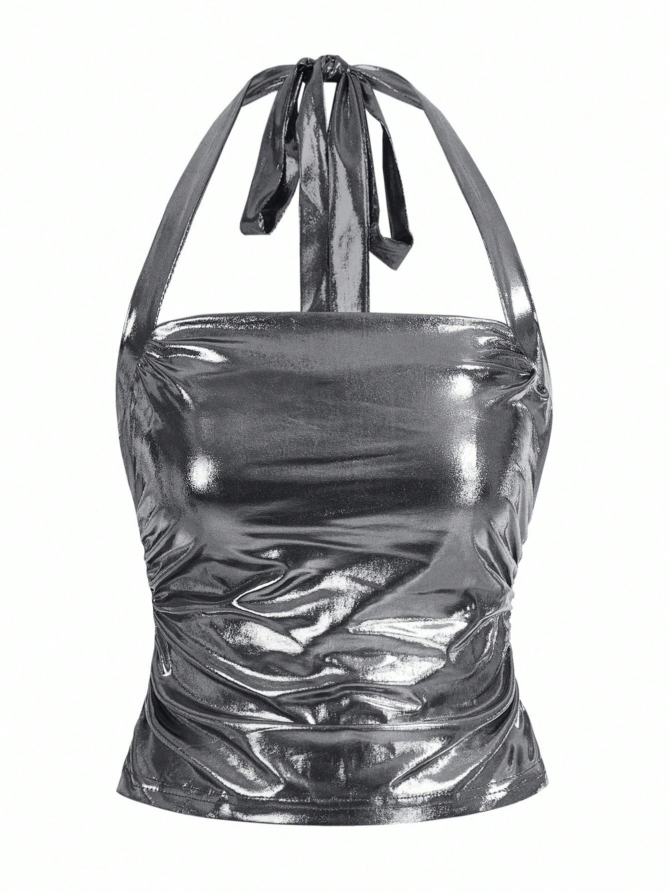 SHEIN x PRISCILA & JIMENA Women's Metallic Halter Neck Top, School