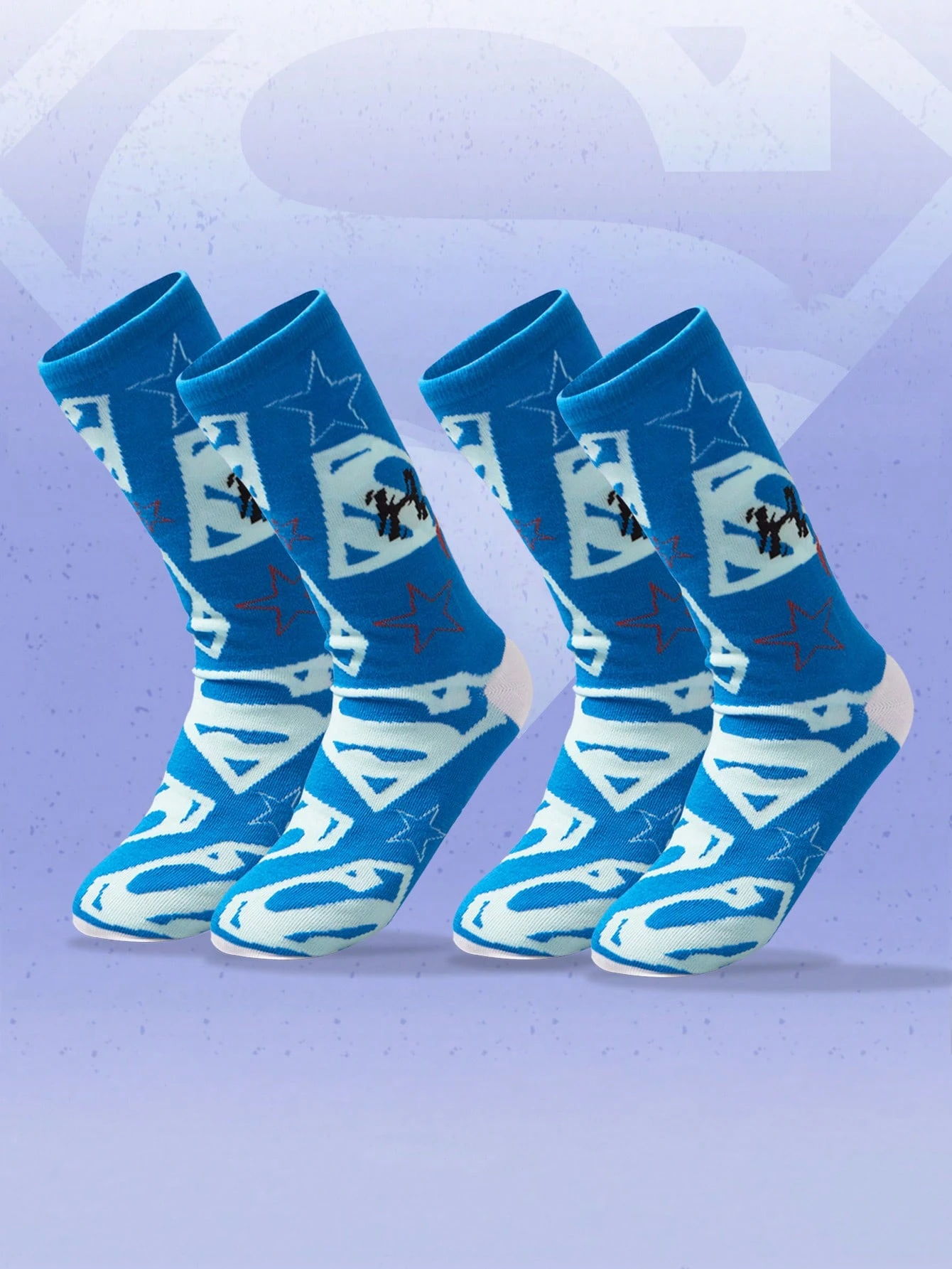 SUPERMAN X ROMWE 1 Pair Geometric Print Intarsia Mid-Calf Socks, & Cute Design, Comfortable & Breathable, Suitable For Couples, School, Everyday, Sports, Holiday, Halloween
