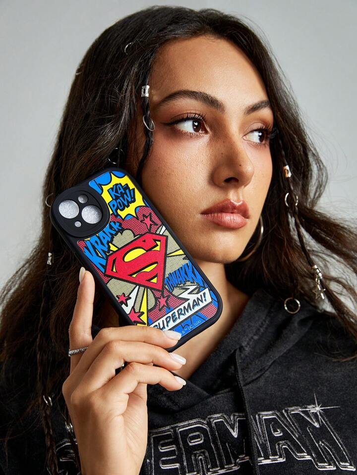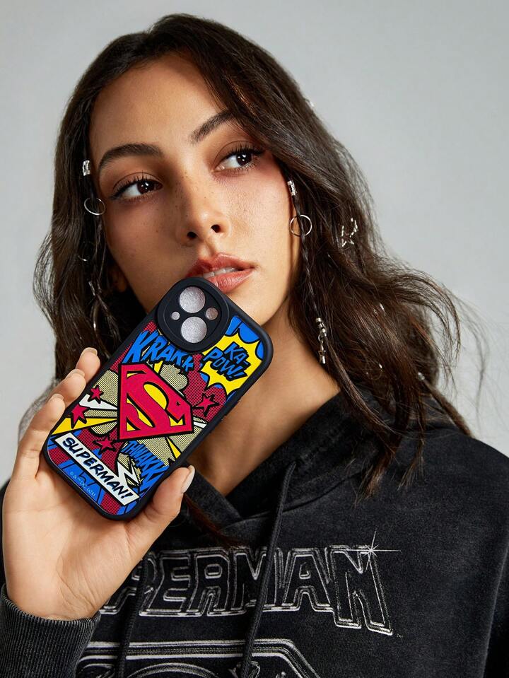 SUPERMAN X ROMWE 1pc Black Logo And Letter Graphic Phone Case Compatible With Apple IPhone 11 12 13 14 15