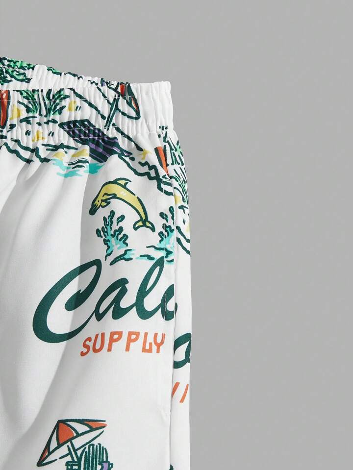 Sainen.image Guys Letter Graphic Drawstring Waist Shorts