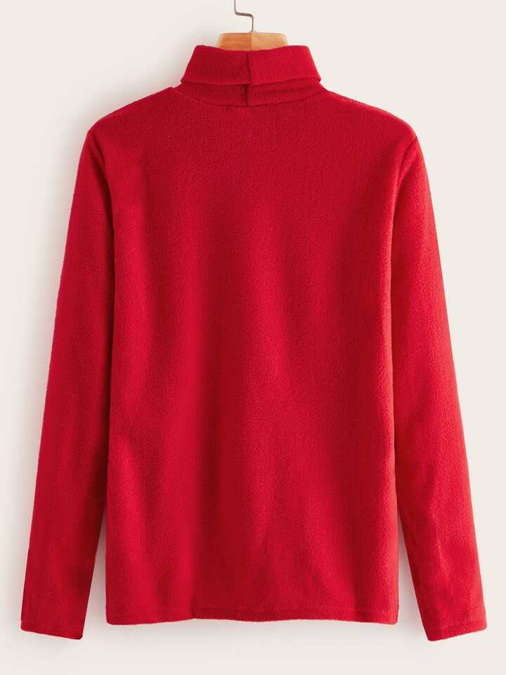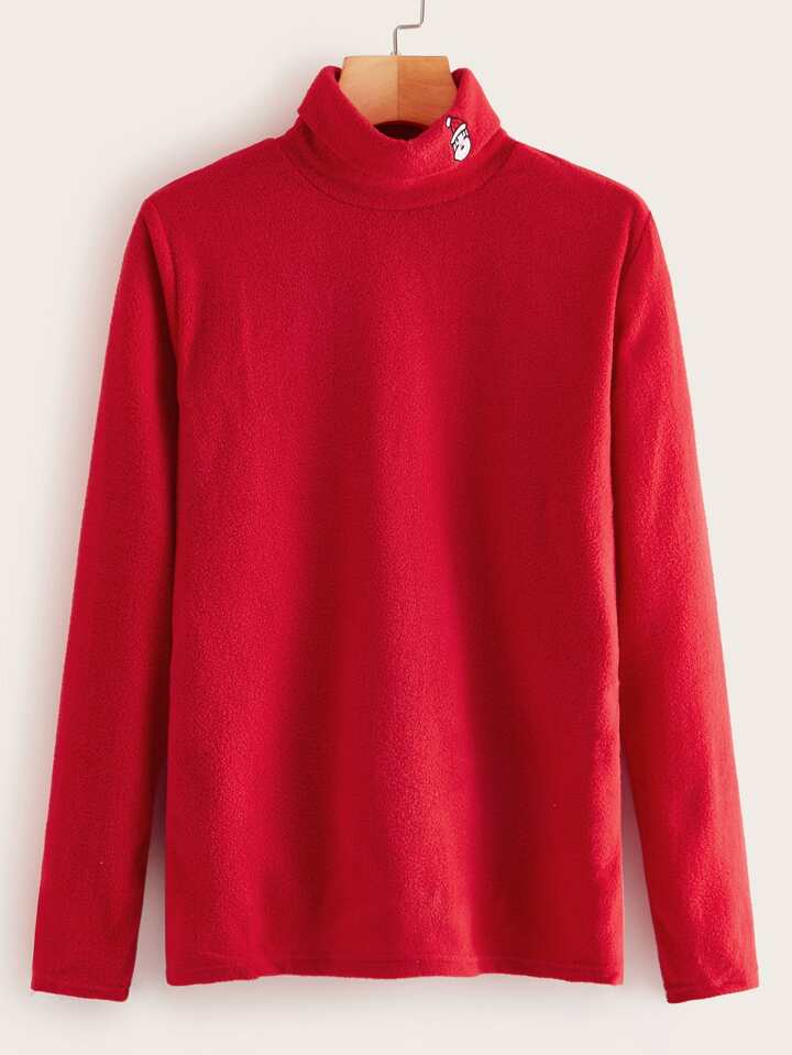 Santa Claus Embroidered Turtle Neck New Year Flannel Tee