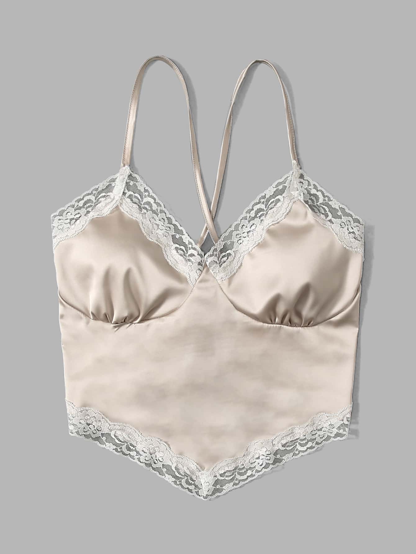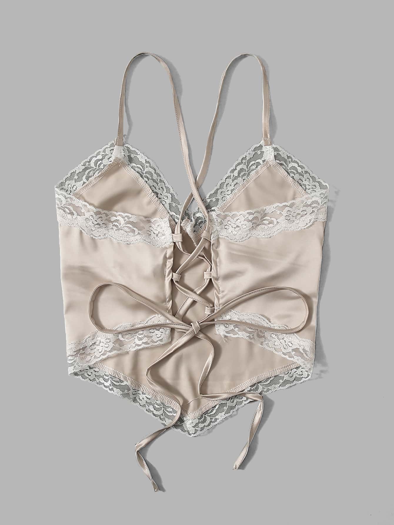 Satin Lace Trim Lace Up Cami
