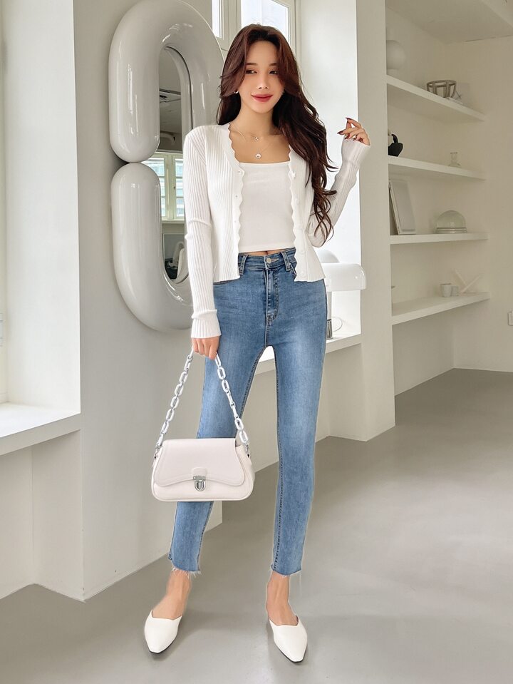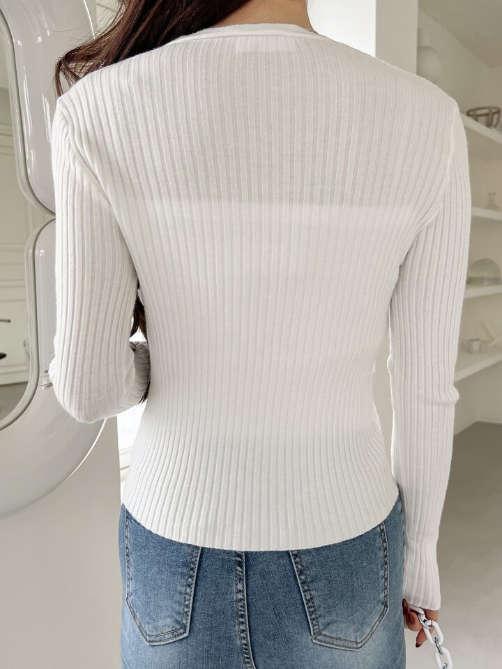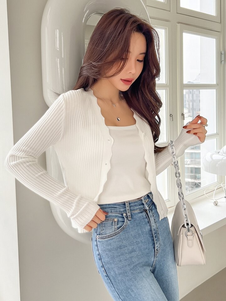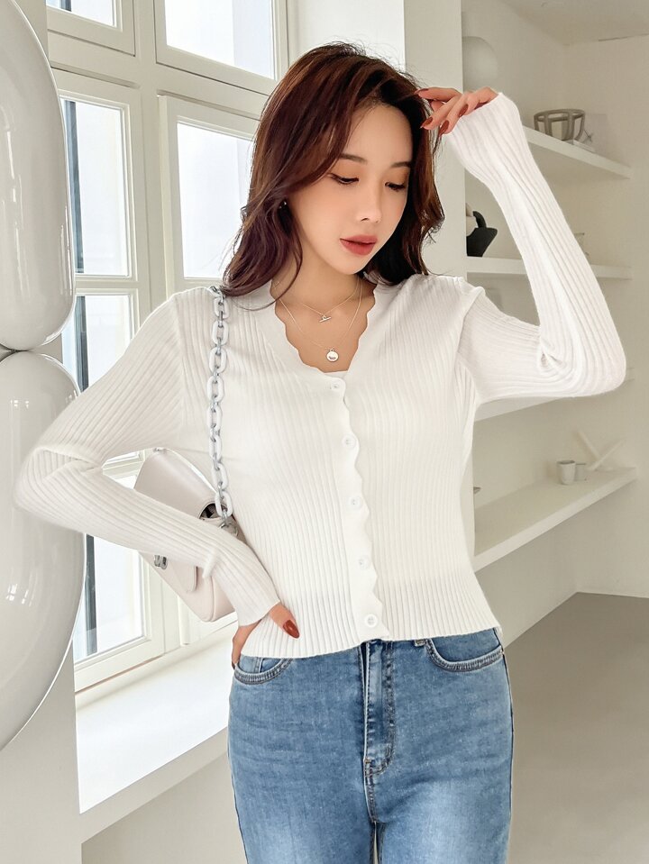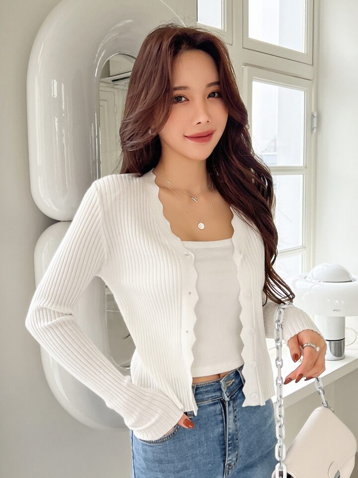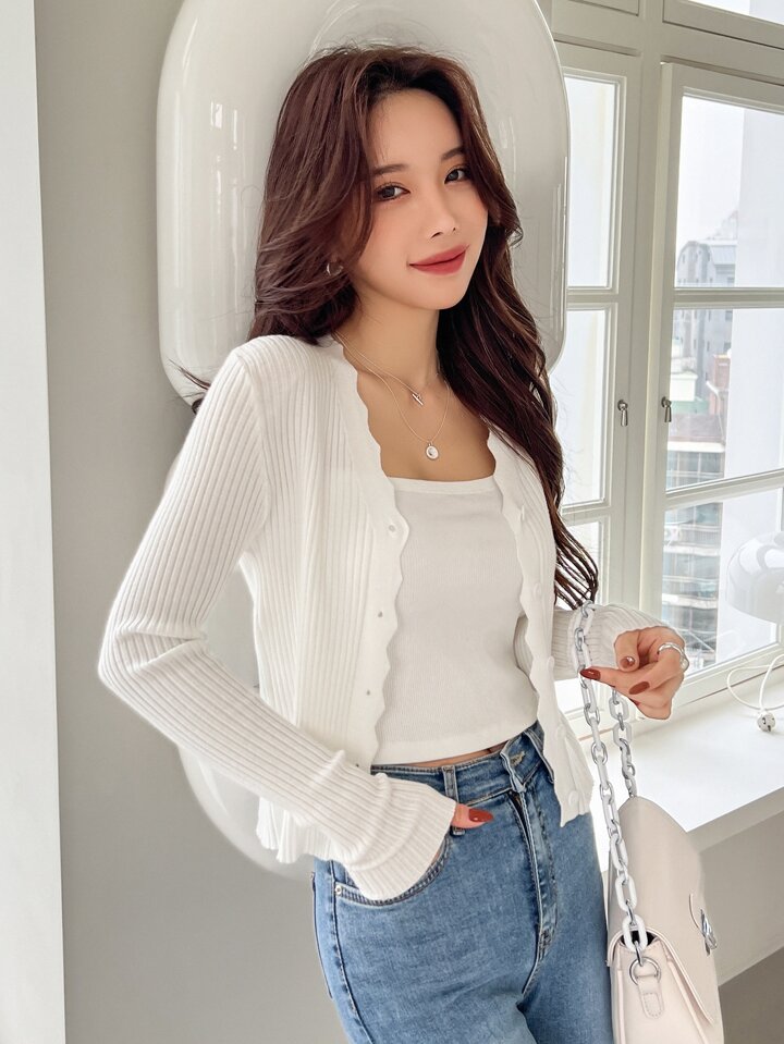 Scallop Trim Ribbed Knit Cardigan,Long Sleeve Tops,Fall Clothes