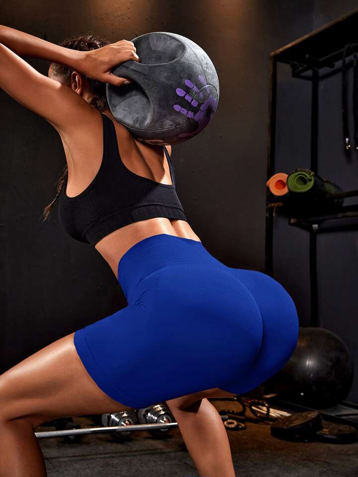 Seamless Wide Waistband Scrunch Butt Sports Shorts Blue ShortsWomen Sweat Short, Gym Short, Biker Short