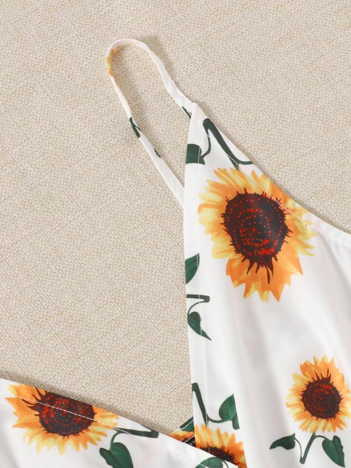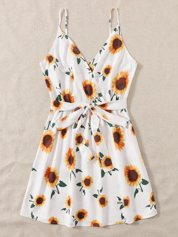Self Belted Sunflower Print Cami Dress Sun Dresses